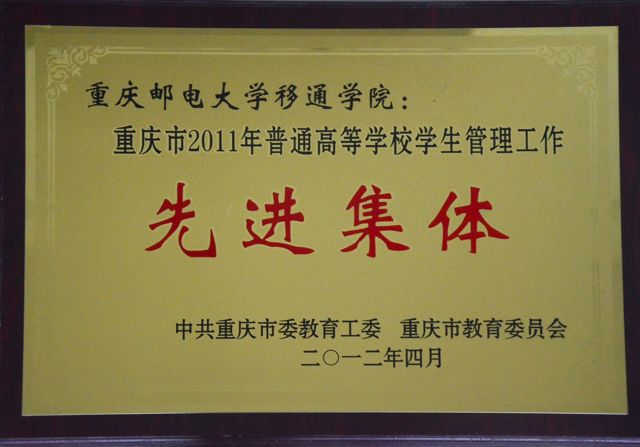 2011年获重庆市普通高等教育学籍学历管理工作先进集体
