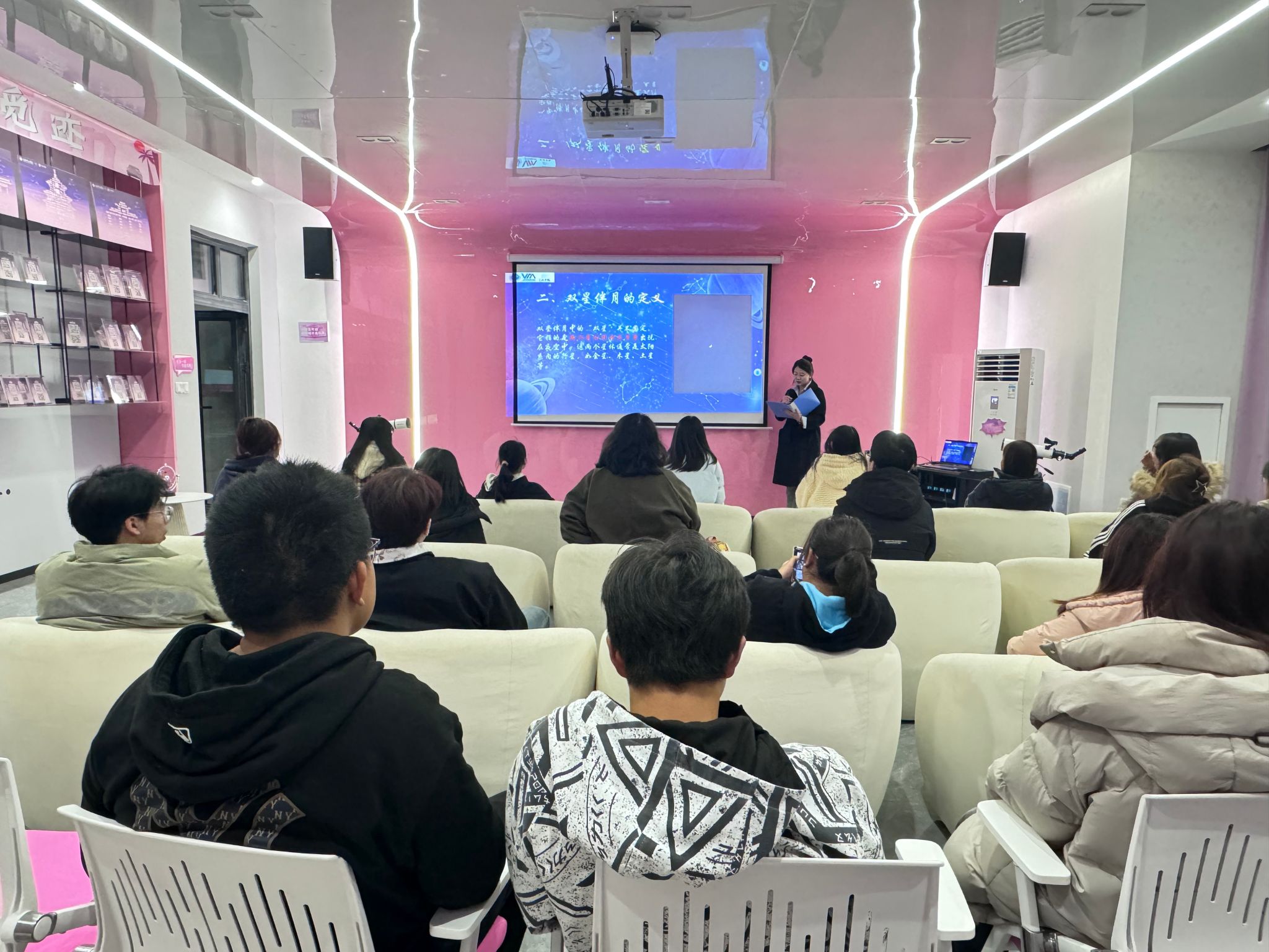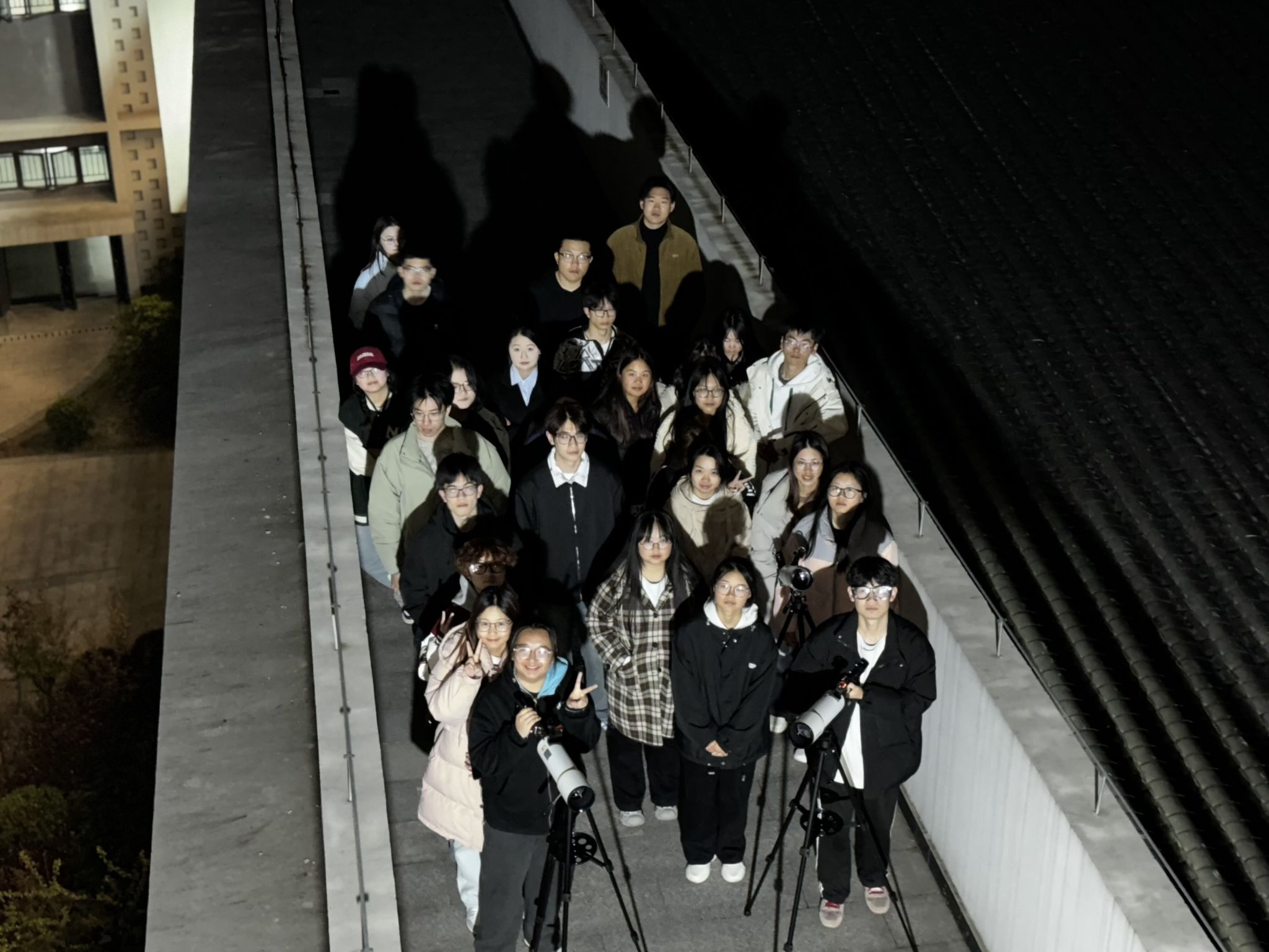 丁山书院又双叒叕搞大动作了!3月19日晚,丁山书院以“双星伴月”天文奇观为契机,开展“宇宙望远镜第二期”金星双重可见伴月观测活动。增设了三台全新光学天文望远镜,将参与者的观感体验直接拉满,现场同学直呼:“天文科普还能这么玩!”