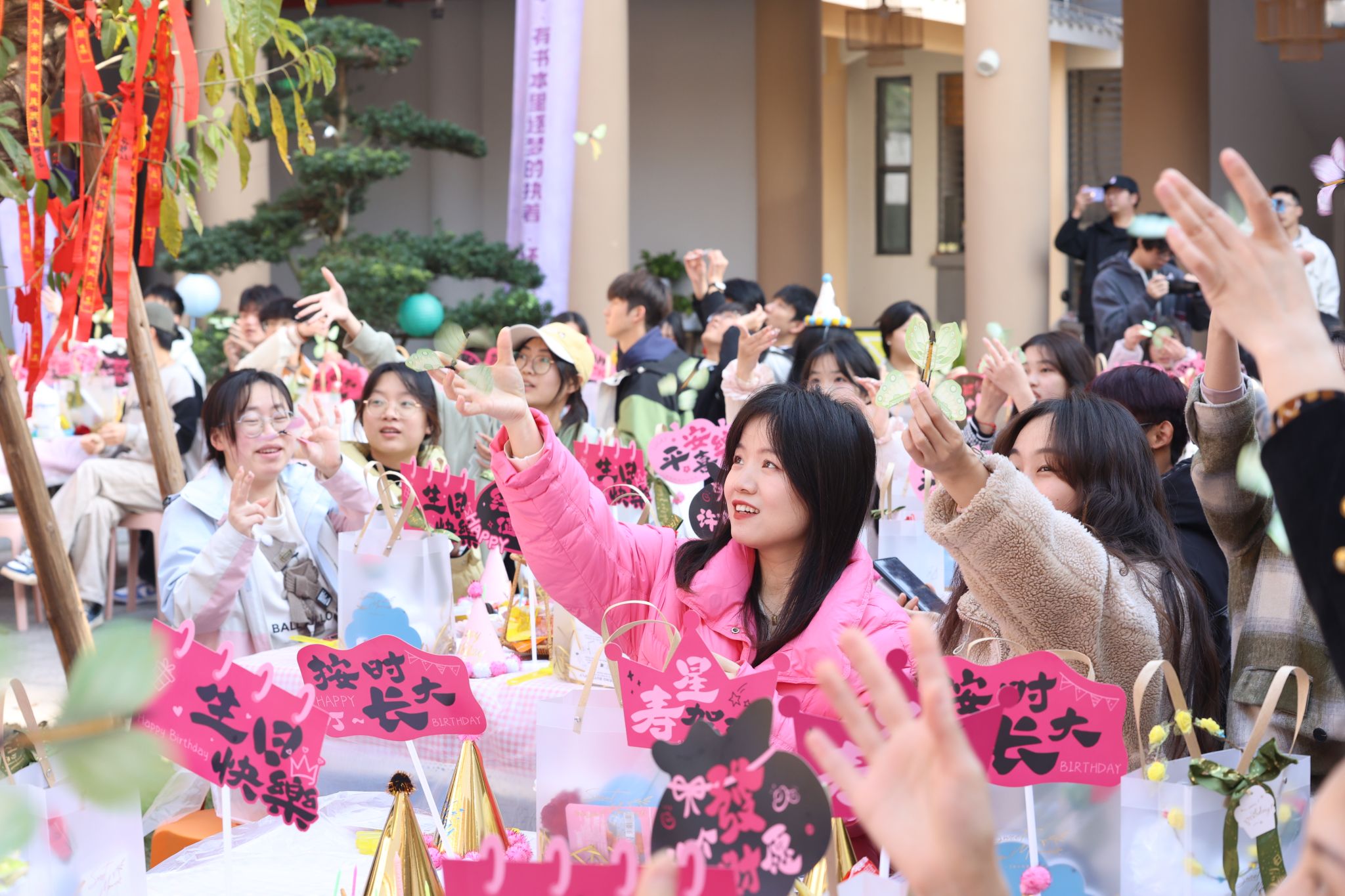 这场生日会不仅是时间刻度的仪式,更是一场关于生命力的礼赞。从玫瑰象征的个体绽放,到蝴蝶隐喻的蜕变新生;从代际交织的祝福,到传统手艺与青春活力的碰撞,无一不诠释着“陪伴与成长“的深层意义。正如活动负责人观云书院学生发展导师付正甜所言:“我们想告诉每位师生,教育不仅是知识的传递,更是共同创造温暖的体验。”这个充满花香与笑语的春日傍晚,已然成为校园记忆中一抹跃动的光亮。