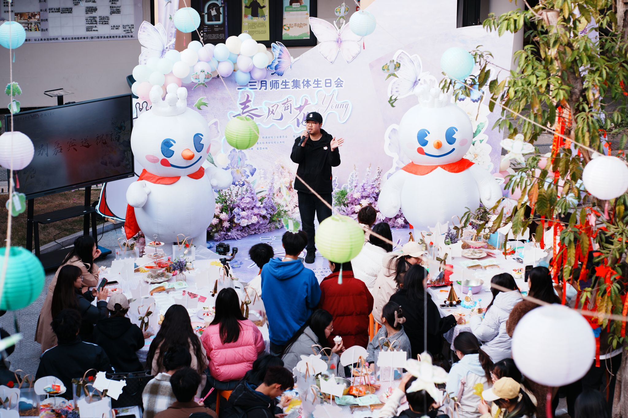 蝴蝶振翅而起,在春风中开启生日会诗篇的起承转合。以文化创意为经纬,将传统书院精神注入现代仪式场域。3月19日,由观云书院联合蜜雪冰城打造的“春风有花YOUNG”二三月师生集体生日派对,在重庆移通学院工会委员会、书院部的指导下圆满落幕。本场生日会用100支玫瑰、100份手作礼物、100个金蛋,破茧成蝶的仪式感,和“承包全场冰淇淋”的重磅彩蛋让现场“甜蜜超标”。