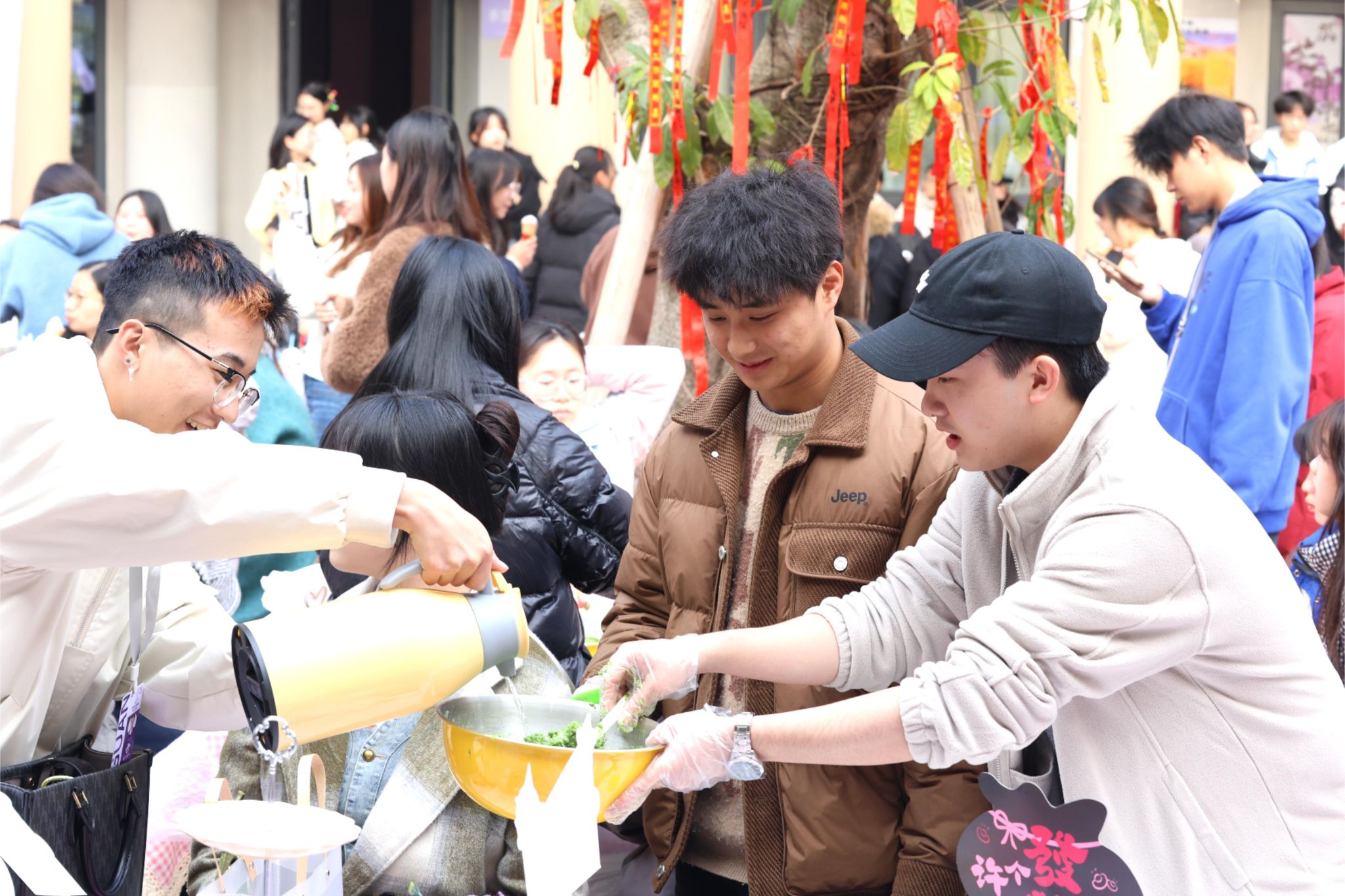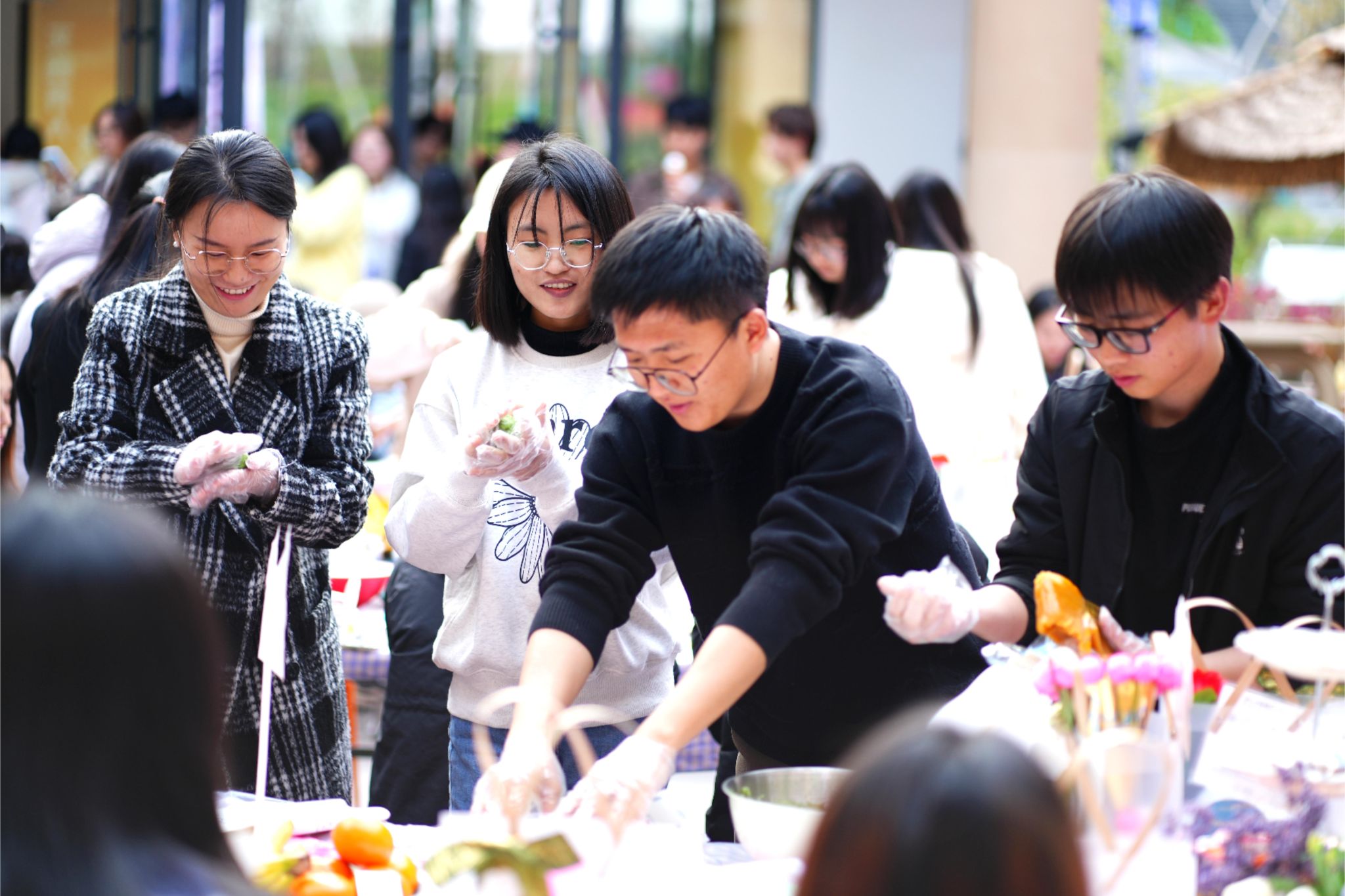 除核心环节外,活动还穿插诸多环节。舞蹈诠释着青春活力,魔术师指尖的火焰玫瑰肆意绽放,现场师生自制青团带来春天的滋味,攻防箭靶场蕴藏着传统文化密码……碎片化的小确幸堆叠成师生共同的欢腾记忆