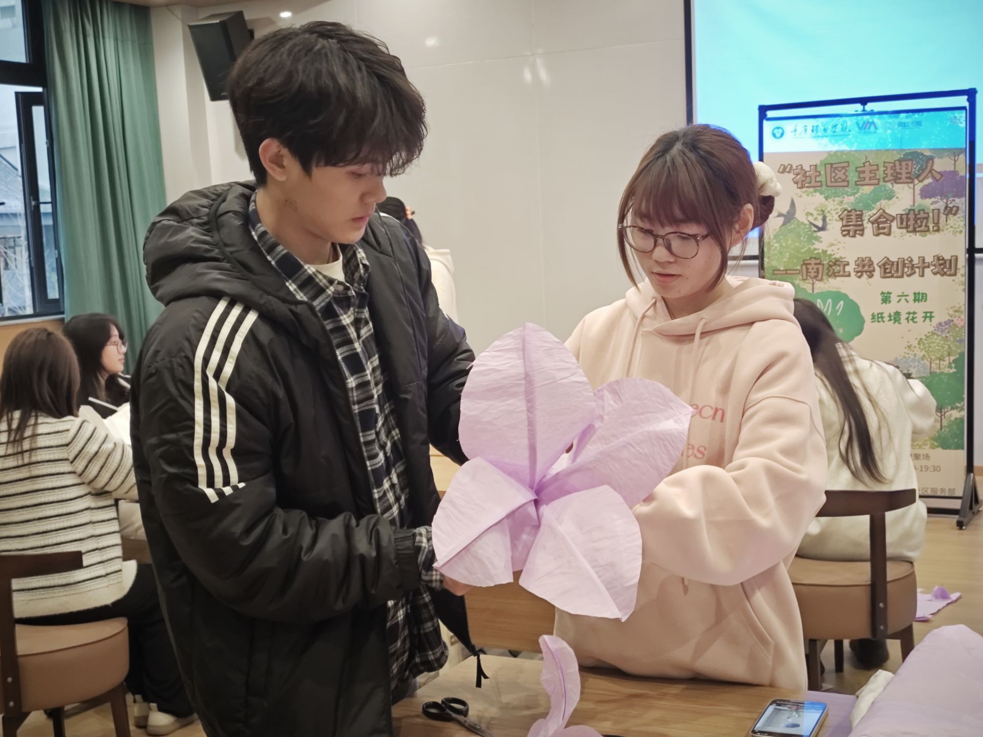 当樱花垂落檐角、玉兰轻叩轩窗,南江书院正以满园春色演绎着"花圃园林书院"的生态美学。为打造"共创共建共享"的社区空间,书院发出号召:“社区主理人集合啦”,邀请学子们以纸艺花定格烂漫春光。虞美人、百合、玫瑰等手作花卉将在社区空间绽放,让纸艺花肌理浸染春意,更让每位参与者成为书院社区主理人——这不仅是对自然的礼赞,更是学子用创意构健社区关系的温暖实践。