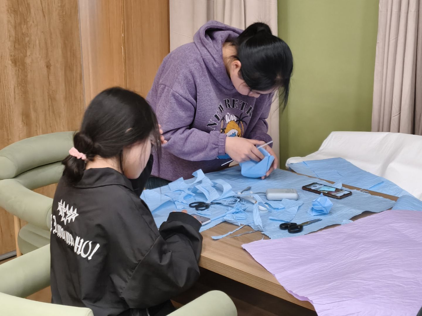 纸艺花活动不只是手工聚会,更是温馨社交体验。活动现场,同学们热情互动,彼此交流折纸心得,毫无保留地分享创意灵感。在两个小时的创作马拉松中,上百张纸经历着华丽蜕变。唐文杰同学带领的队伍复刻莫奈花园的紫色百合;李联莉同学的队伍则将纯白的花瓣灵巧组合成虞美人。这些承载着个体记忆的纸艺花,即将入驻书院空间,成为可触可感的"人文地标",大家快来南江共赴春日列车之旅吧!