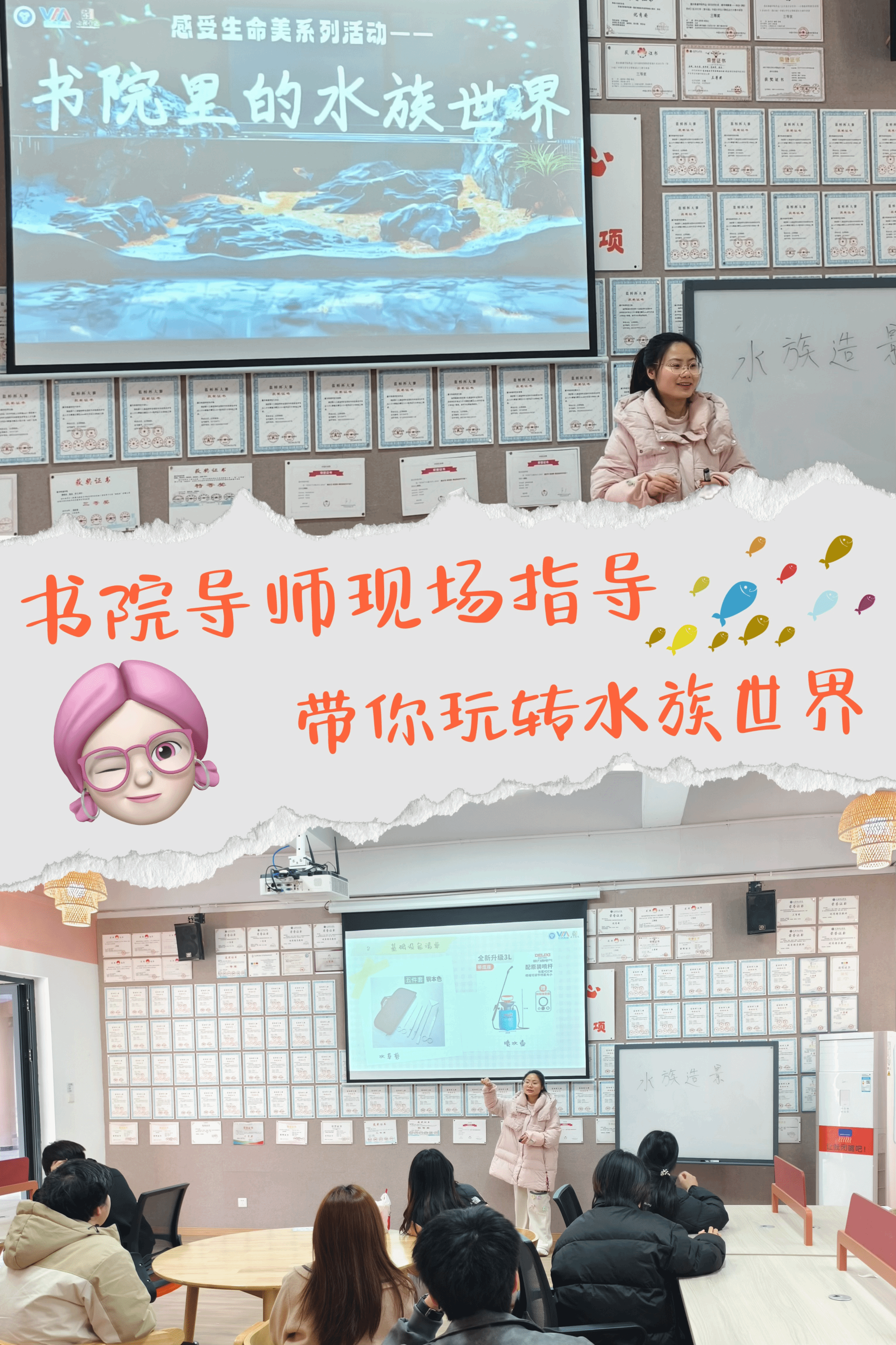 通过邀请学子共创水族世界,美化书院“客厅”,深化书院“家文化”,让每位古剑学子无论是在参与中还是在驻足观赏中都能收获幸福感与归属感~