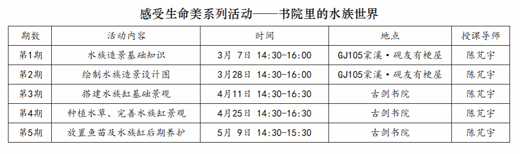 古剑书院学生发展导师陈芃宇现场坐镇!从选材技巧、布景美学到生态维护,手把手教你玩转水族造景,小白也无需畏惧!