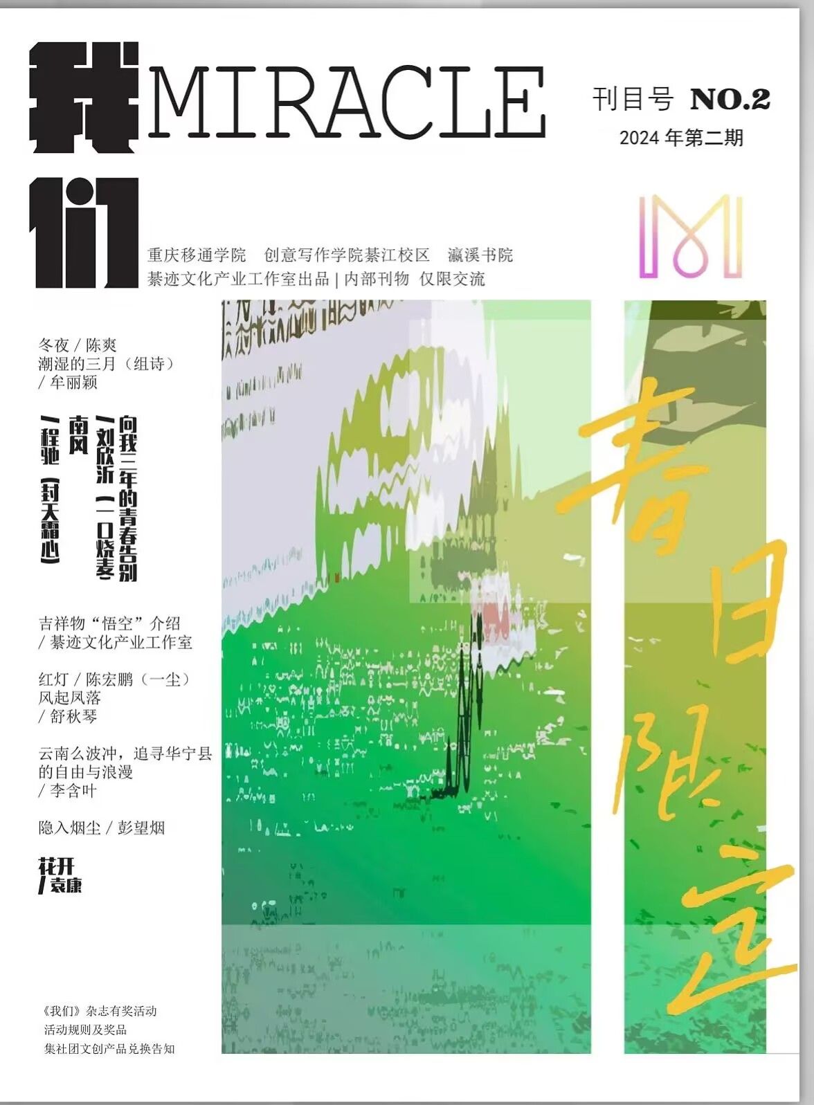 其中重庆移通学院瀛溪书院与创意写作学院共建的綦迹文化产业工作室与重庆市綦江区文化和旅游发展委员会、重庆市綦江区图书馆合作出版第三期《我们》杂志