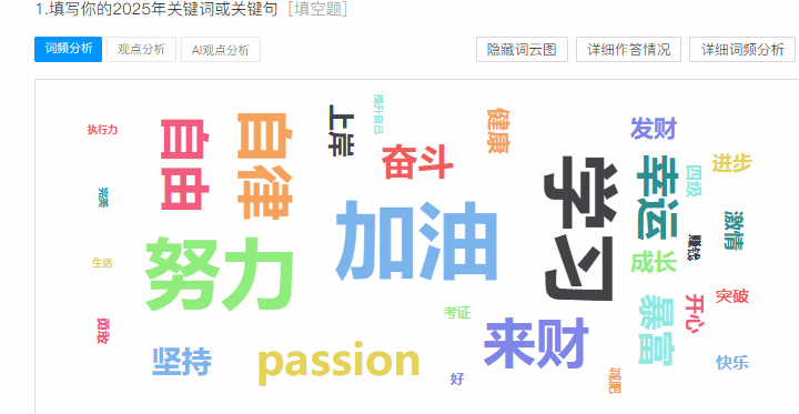 另外同学们也提到了“健康”、“坚持”等词条,通过增加运动类、互动类活动让学子们保持健康心态,勇于迎接未知挑战。