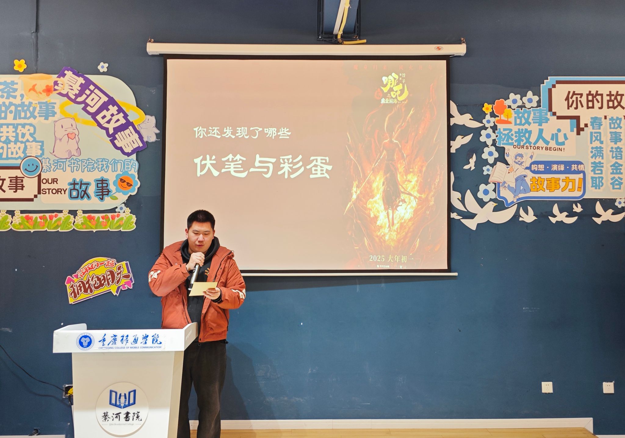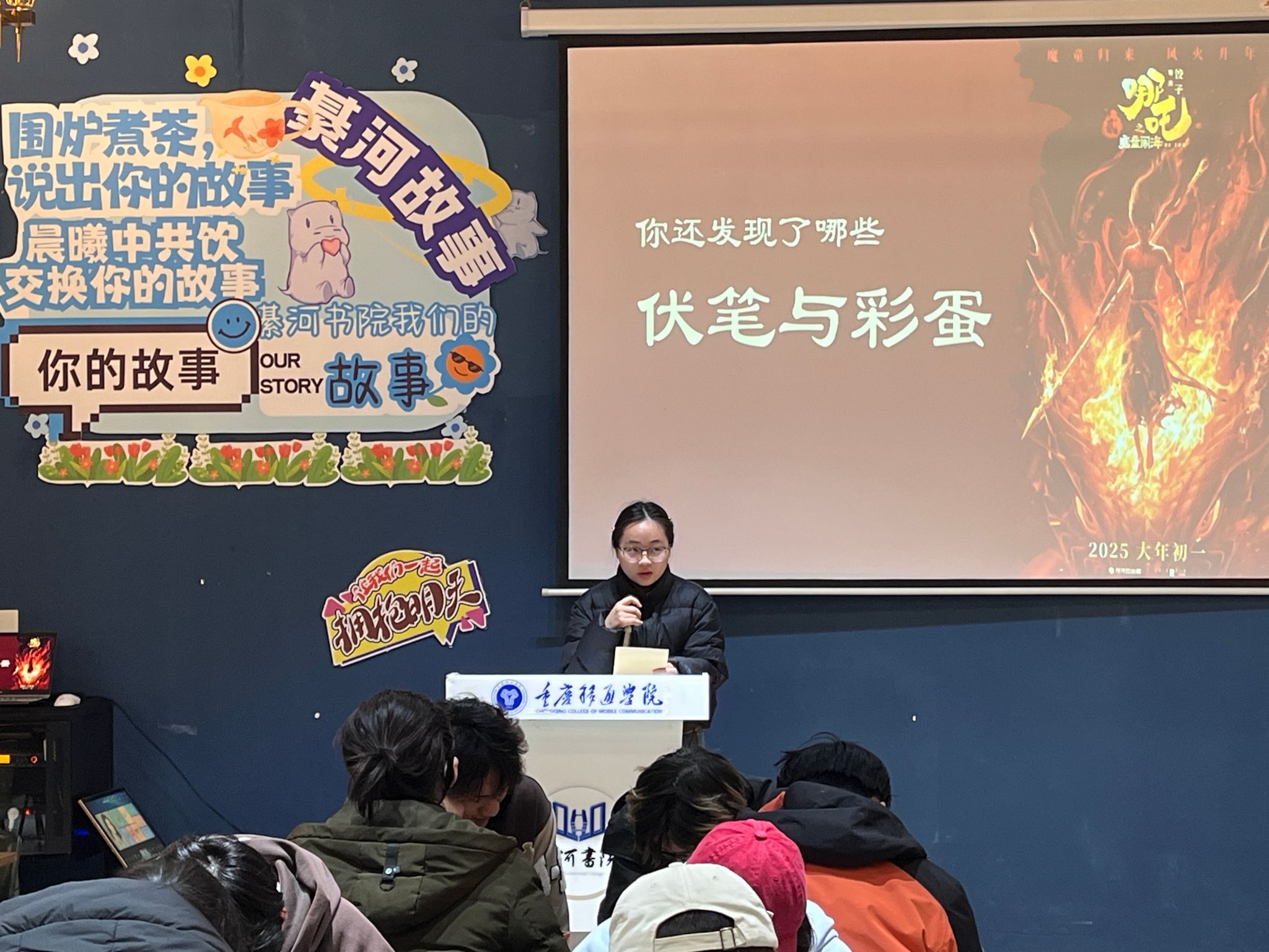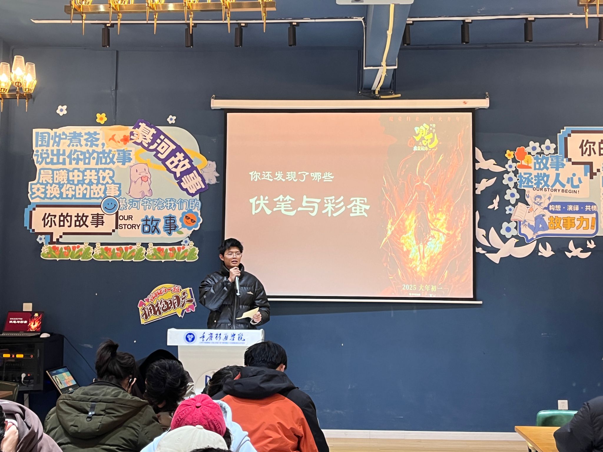 助我破谜,给小爷我破!一则文章,一篇电影,一段剧情,一次经历,故事的内容或平淡温罄,或反转强烈,于细节处窥见不一样的故事脉络走向。綦河书院立足于“故事力“培养体系,于3月26日在东篱·故事茶馆举办了故事伏笔研究所——谈谈哪吒2中的隐藏彩蛋,兼具哪吒勇猛与敖丙智慧的书院学子,在探讨哪吒2剧情彩蛋中锻炼结构化思维,于分享中增进彼此之间的情感交流。