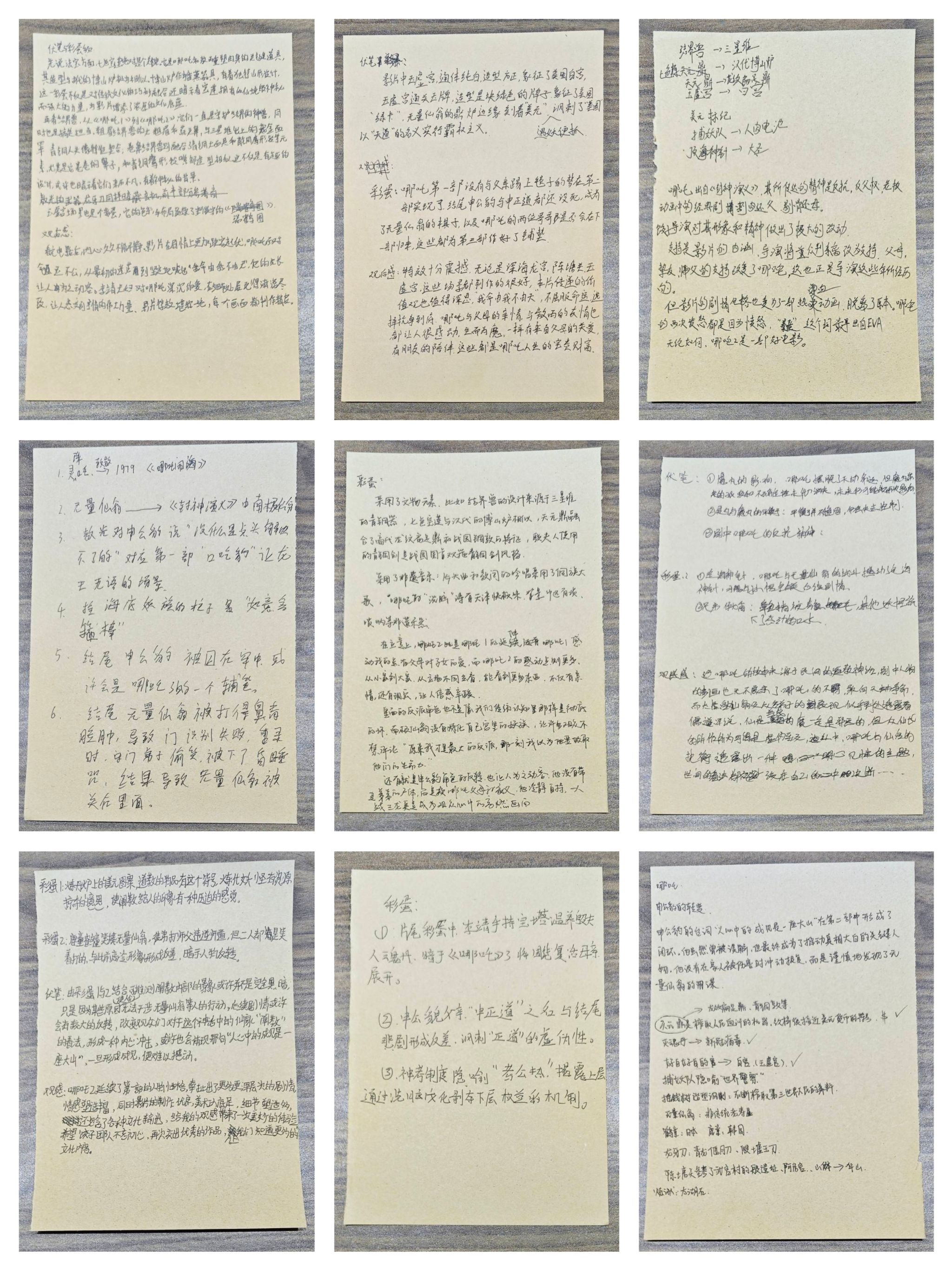 同学们在几个简单的剧情图片互动热身环节中边思考边动笔,第一位同学率先上台分享她发现的彩蛋:“我在哪吒2中发现它采用了文物元素,比如结界兽的设计来源于三星堆的青铜器,七色宝莲与汉代的博山炉相似,天元鼎融合了商代龙纹扁足鼎和战国铜敦的特征。这些无不与哪吒的背景历史相互呼应。”