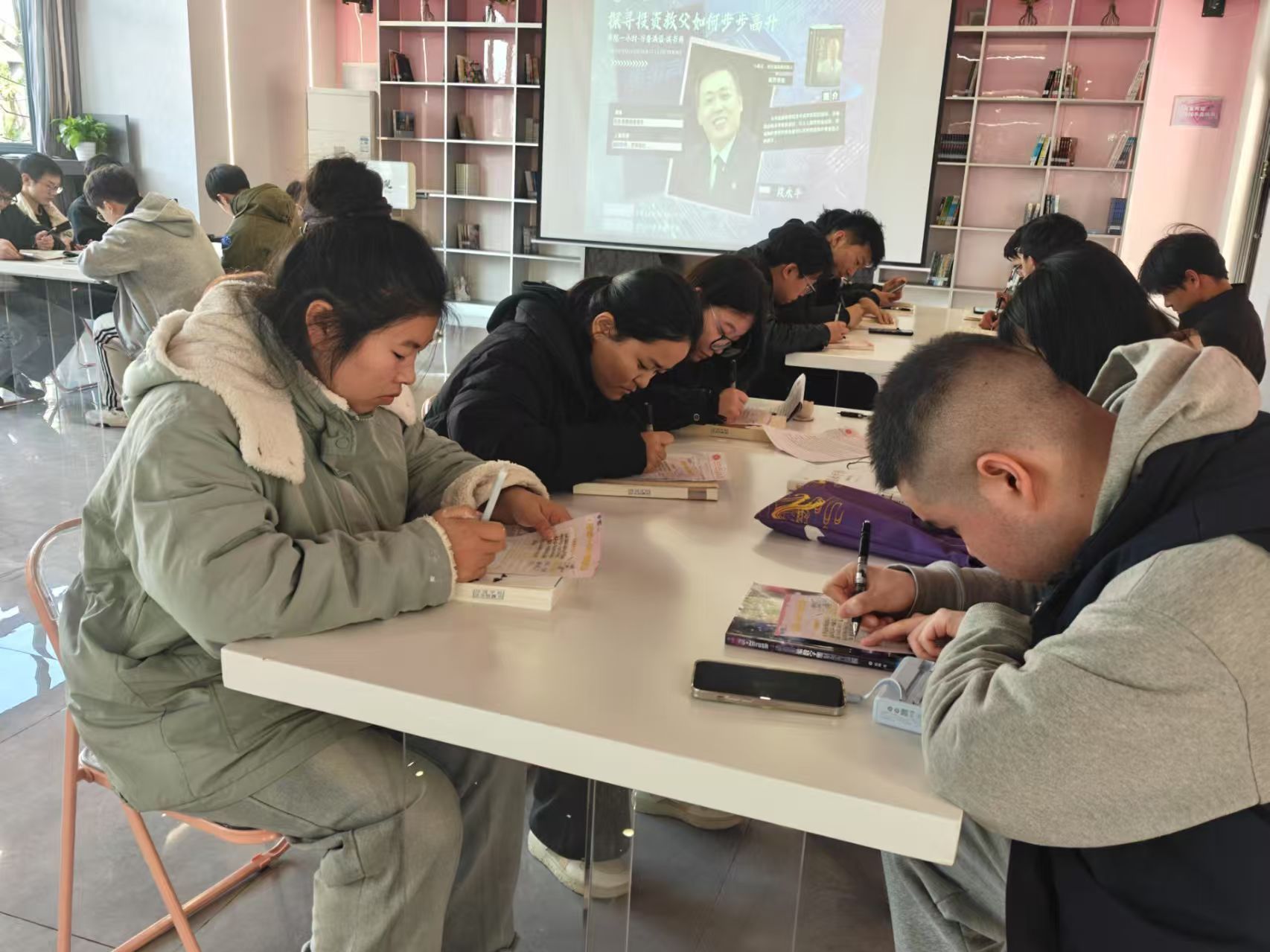 为激发同学们的读书热情,进一步营造浓厚的读书氛围,推动我校四位一体双院制的育人模式的实施。丁山书院于2月26日在DS104书吧开展了一场极具书香味的大咖阅读活动。同学们齐聚一堂,共同品读《段永平传》,领略商业传奇人物的智慧与风采。