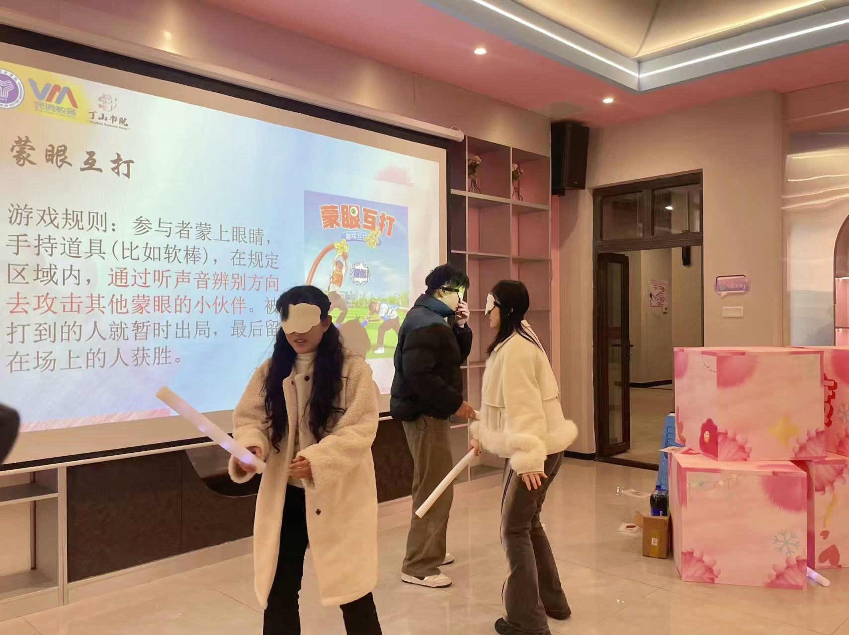 故事不该单调,活动需有平仄。在总结酒会中,通过玩各种小游戏来调动现场氛围,蒙眼互打、抢凳子、数字报团和踩气球等,大家的每一次欢笑都是丁山团队融洽的最好证明。“蒙眼互打”游戏环节中,场上场下都在“发力”,在“混乱”中通过声音寻找被打击者;而“踩气球”游戏更是考验团队配合,每个队员都像是紧密咬合的齿轮,缺一不可。这些游戏的目的不是在赢得胜利,而是拉进大家的距离。