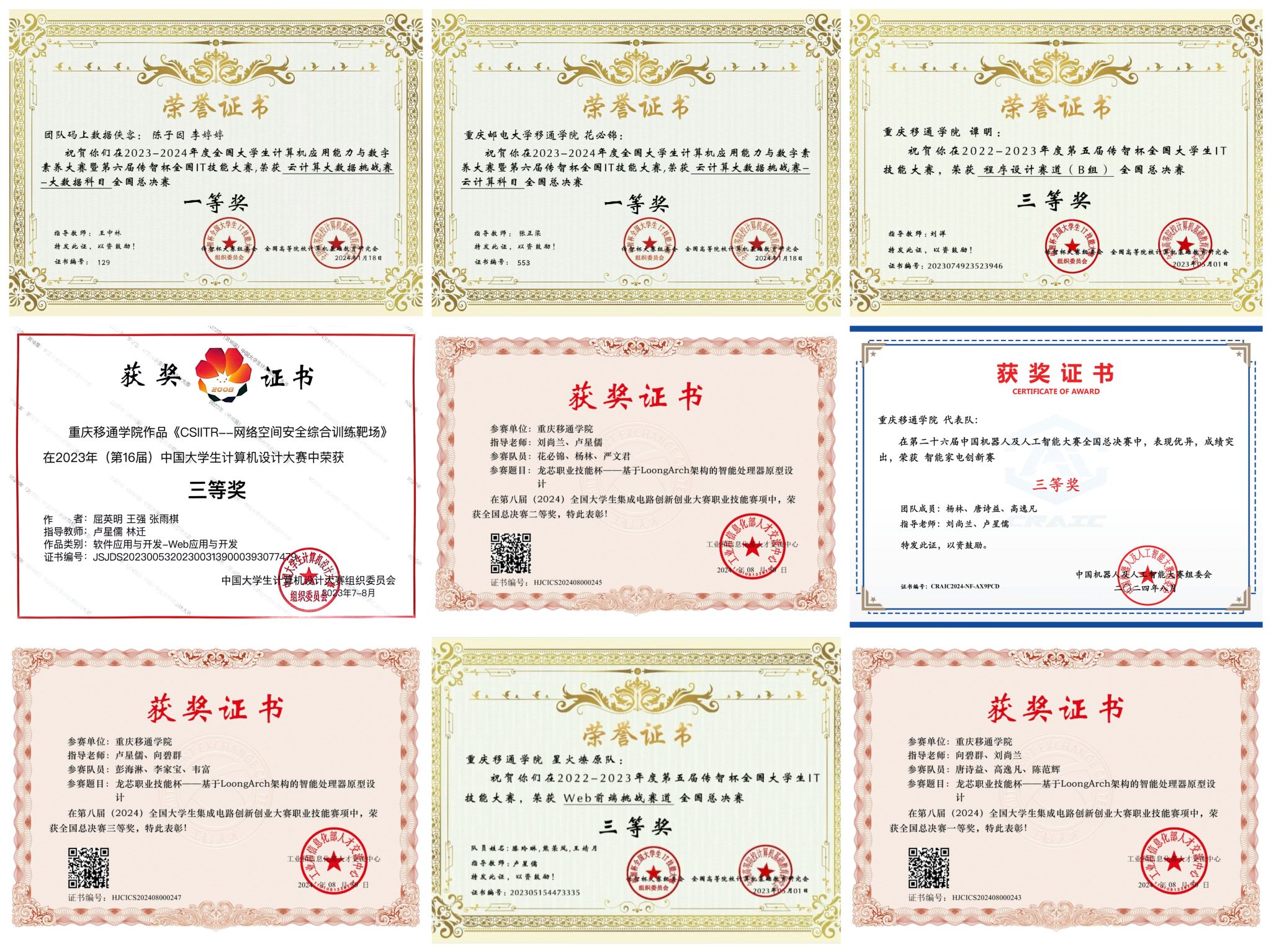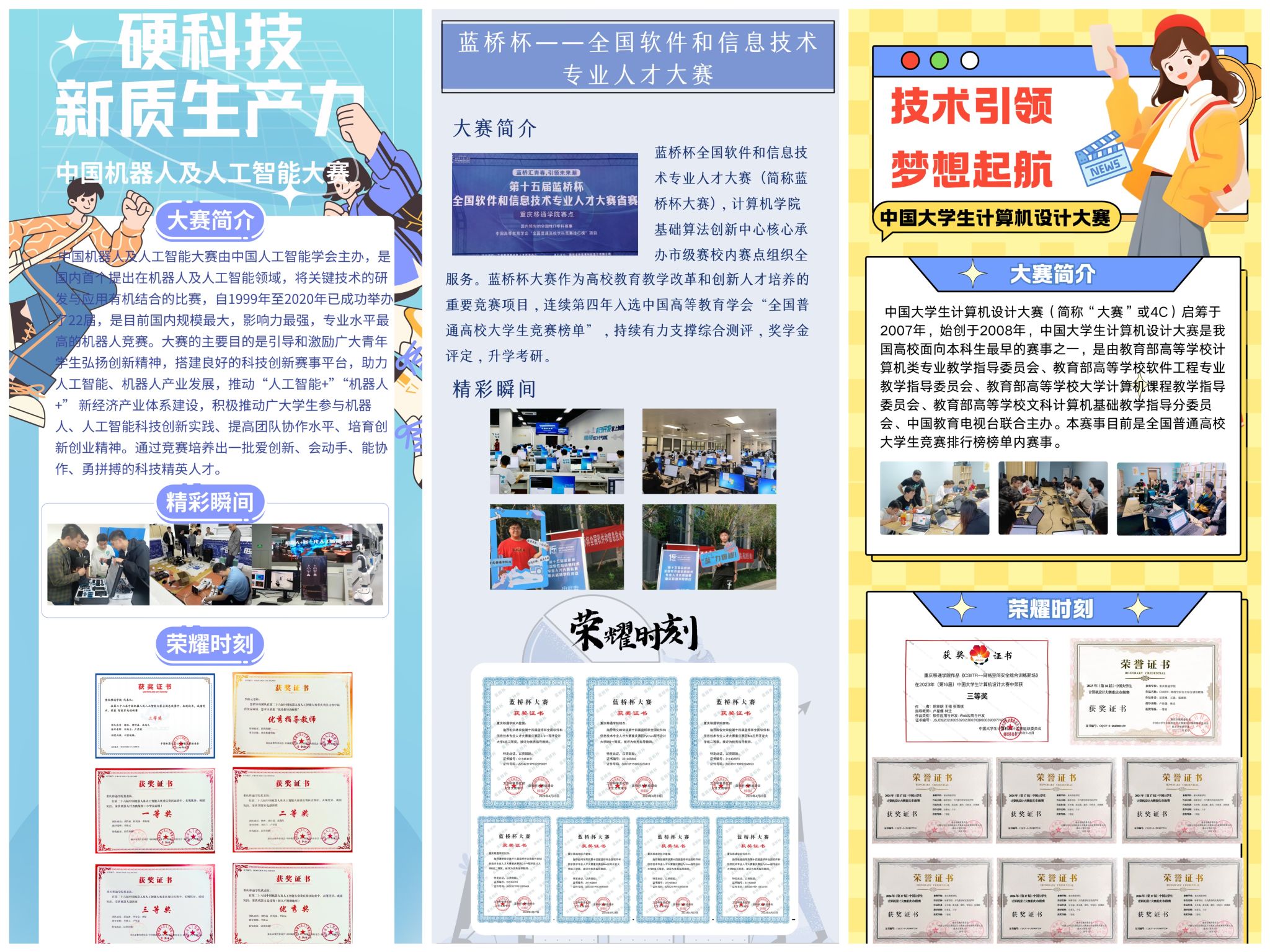 为锤炼学生实战能力,以赛事检验学习成果,工坊全力组织学生参与各类国家级、省部级学科竞赛。从项目选题、方案设计再到实操演练,老师们倾囊相授,助力同学们不断突破技术难关;历经无数调试与反复路演,工坊成员们在各类竞赛中一路高歌猛进,累计斩获国家级奖项60+项、省市级奖项140+项,更是将中国机器人及人工智能大赛、全国大学生计算机应用能力与数字素养大赛等全国顶尖赛事的桂冠收入囊中。这些经历与荣誉显著提升了大家的专业水平,培育了敏锐的创新思维和坚毅不屈的精神品格,也强有力地证实了双院育人模式在全方位提升学生综合素质方面的重要价值。