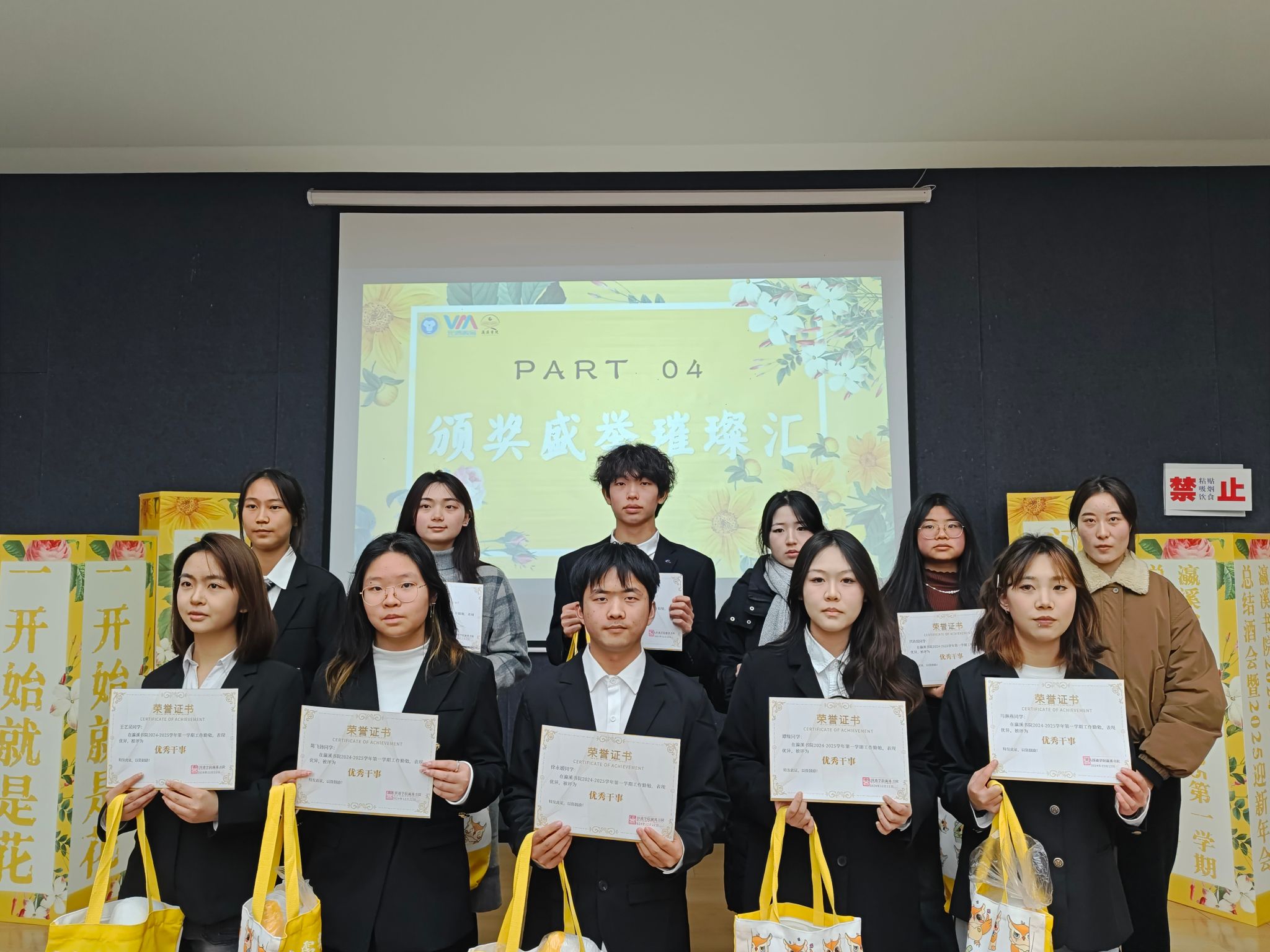 最后卢柯毓老师、陈佳俐老师、韩雨彤老师对本学期表现优异、成绩突出的干部干事进行了表彰。每一张奖状背后都蕴藏着学生的用心付出,而这份荣誉也会化作动力,督促他们在今后的日子秉持初心,继续书写新辉煌。