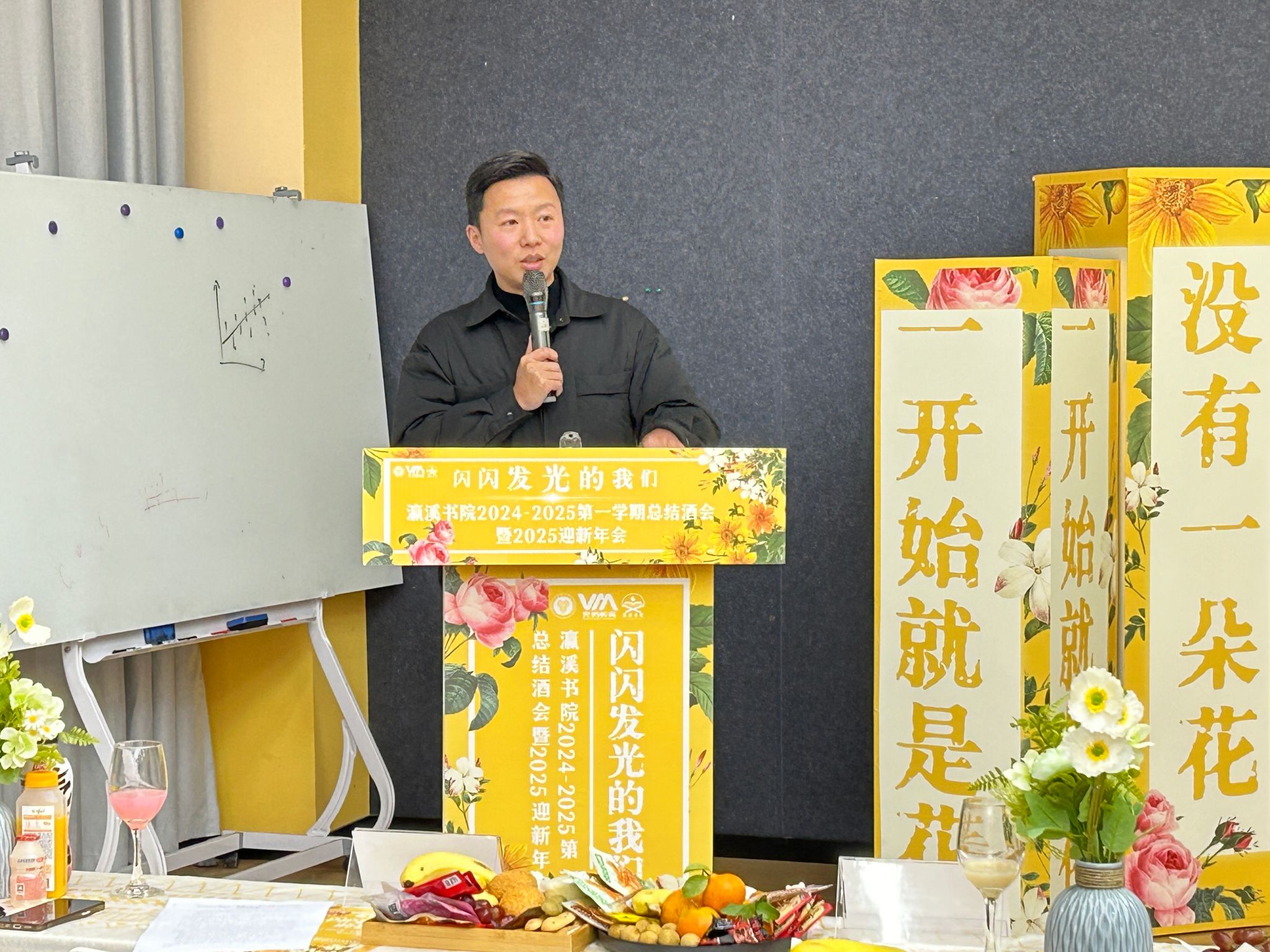 共享喜悦硕果,共度美好时刻。瀛溪书院综合办公室主任卢柯毓老师回顾了本学期的书院事记,用“日新月异”和“脚踏实地”对本学期进行了概括,对书院成员们在书院的学习和工作中所取得的成长和进步给予了一定肯定。他鼓励大家珍惜在书院的每一天,要以积极的态度和不懈的努力,争取在未来的学习和生活中取得更大的成就,希望未来能在更大、更多的舞台上看到各位瀛溪er的身影。
