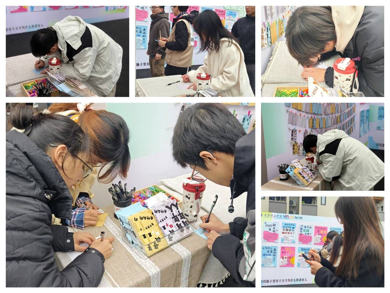 前期话题征集的展出,反映出学子们对生活、对社会的困惑。现场学子们以“明信片”为想法载体,在体味他人的“秘密”中,发出内心的声音。“我从何而来,又将奔赴何方”的哲学叩问,鼓励学子们将自己的独特观点书写并分享出来,促进了学子自我意识的觉醒与思考,为学子提供了一个展现个性、交流思想、增进理解的平台,让每一个参与者都能在他人的文字里,发现自我的影子,为学子的精神世界增添了丰富的色彩。