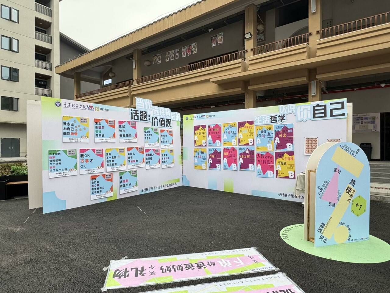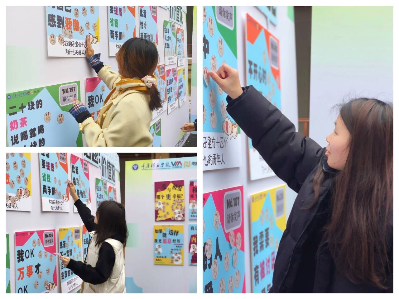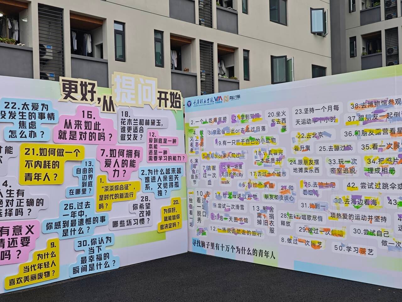 五彩斑斓的涂鸦墙,学子们以颜料为笔,将自己的故事与情感融入其中,许多学子都有过“跟朋友一起倒计时跨年”的经历,也有部分学子沉浸在“拼过乐高或大型拼图”的世界里,以行动书写属于自己的青春篇章。这些涂鸦不仅是学子们对过去的回忆,更是对自己未来的期许与憧憬,旨在鼓励学子勇于对自我提问、敢于实践,以建立更加清晰的自我认知。