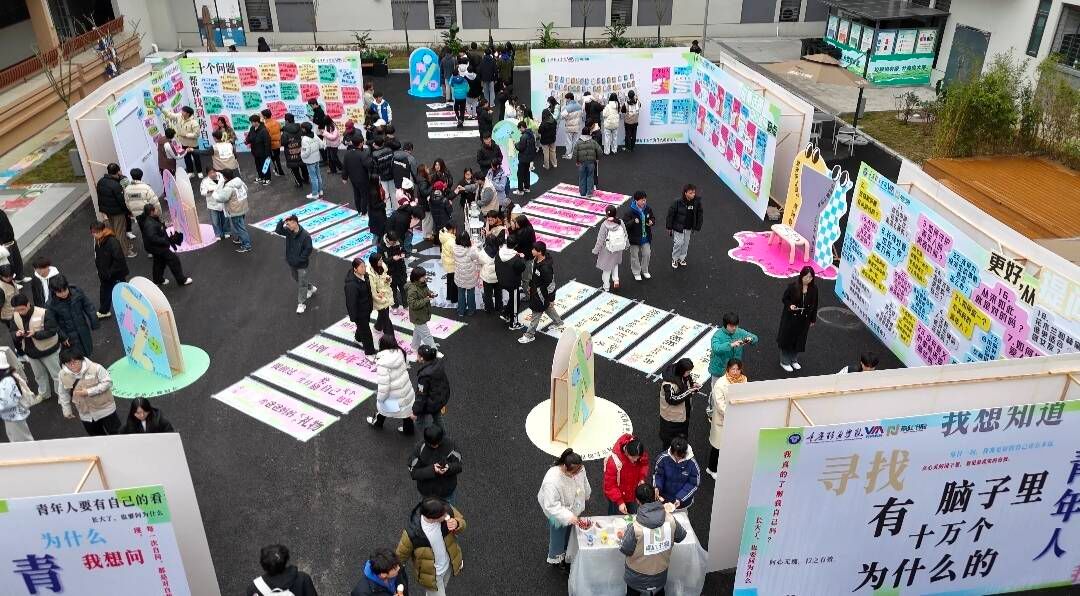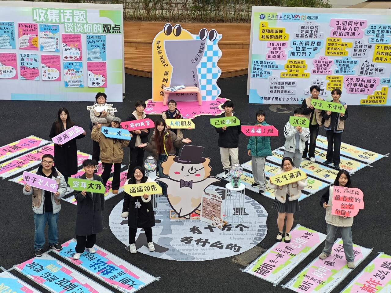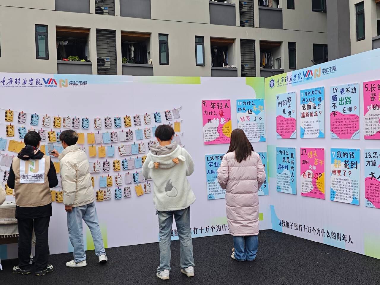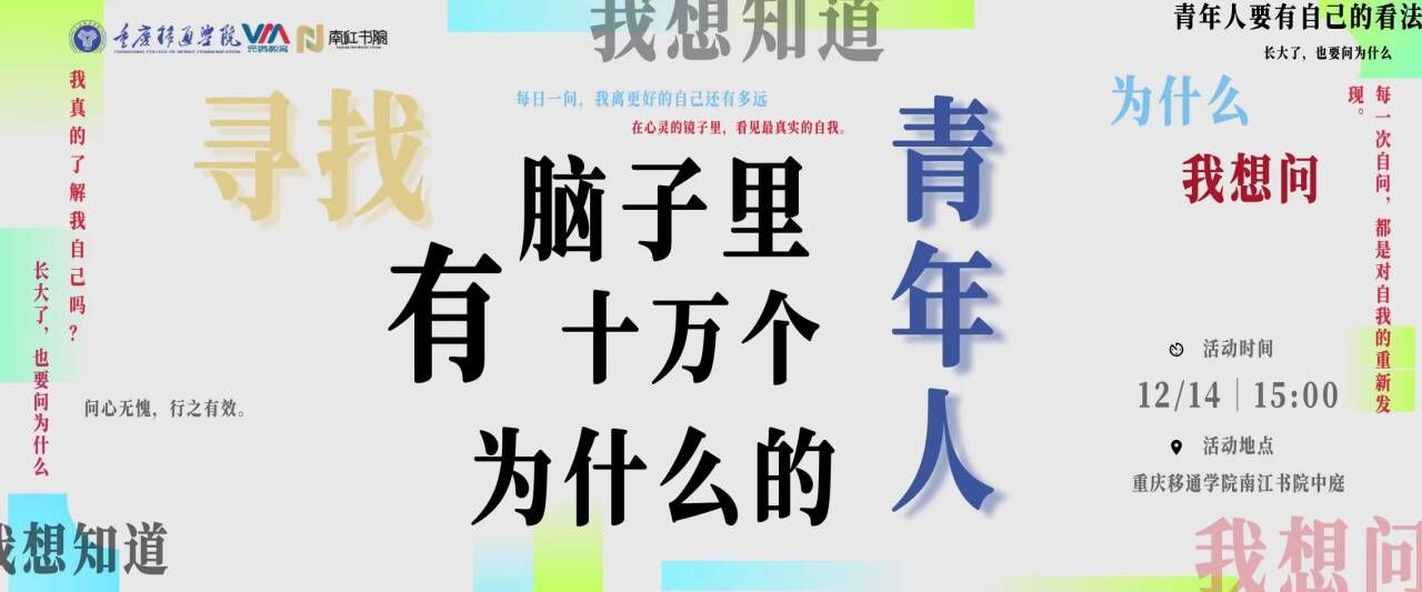 当今社会,青年人热议的话题宛如一面多棱镜,每一个角度都折射出不同的色彩与深意。问题展依托“互动装置+问题/观点”的形式,旨在引导青年捡起散落在生活中被忽视的内容,并在思考、设想问题的观念中折射出当代青年的价值观。南江书院根据“明辨力”中的“问”,于12月13日-12月20日在南江书院中庭,开展以“寻找脑子里十万个为什么的青年人”为主题的问题展。
