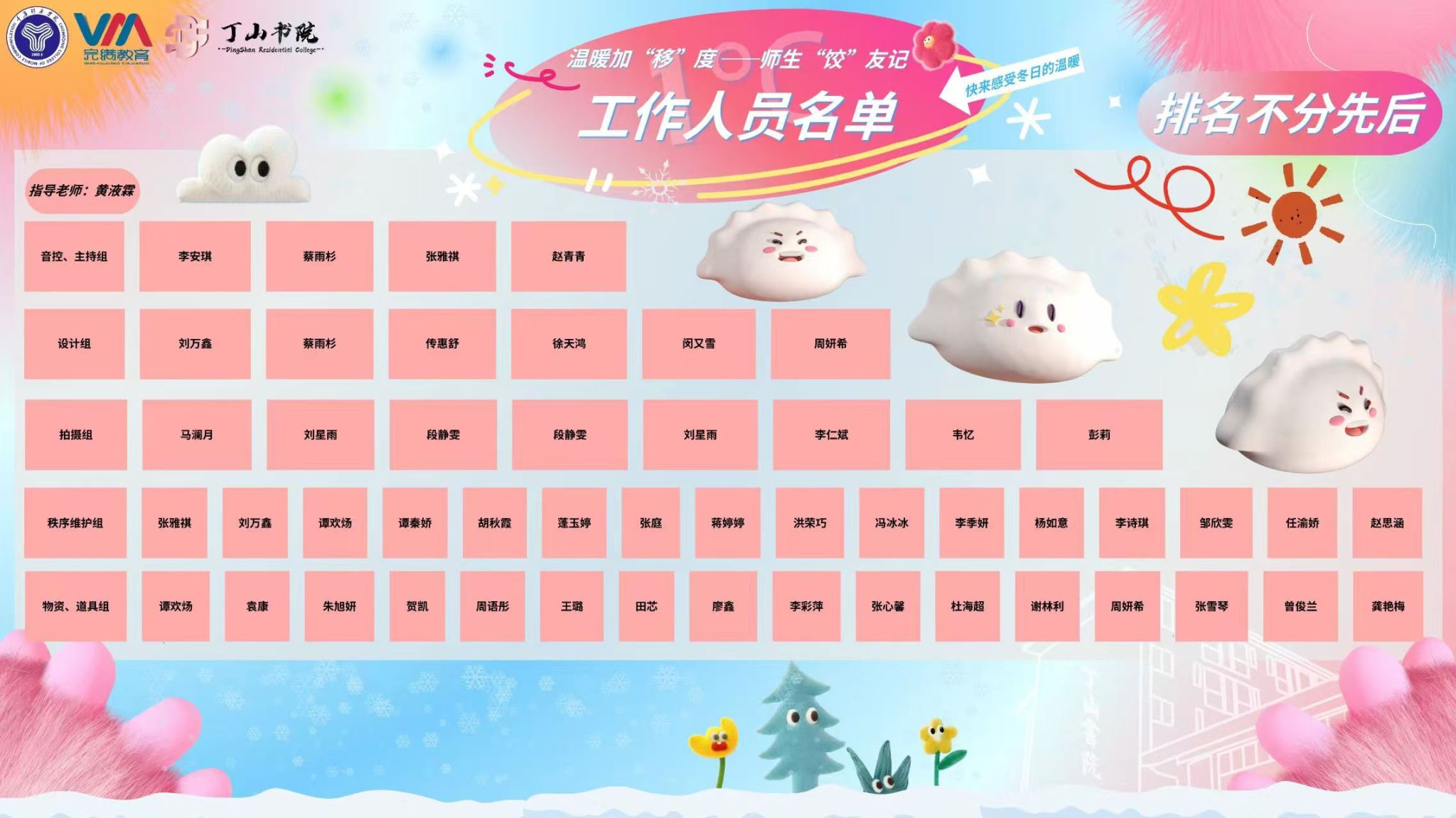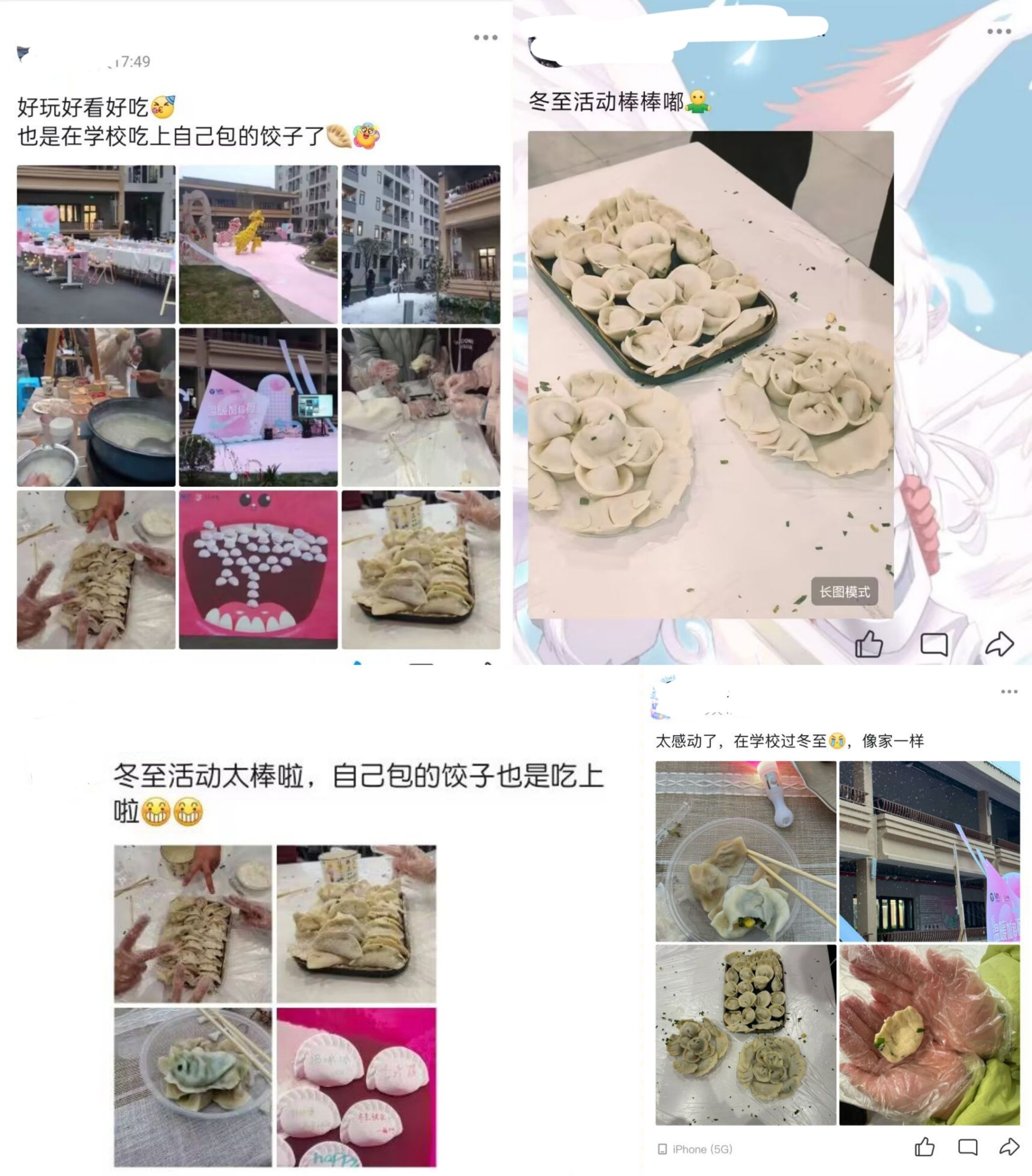 冬至,不仅是二十四节气中的重要节气,更是中华传统节日之一,象征着温暖与团圆。为弘扬中华民族传统文化,深化我校“四位一体双院制+特色课程”的育人模式,加强学生对给予其帮助之人的感恩之情,深化构筑更加融洽的师生情谊与关系。丁山书院于12月21日冬至这天,邀请6位老师2位校园守护者及30名同学在书院中庭举办本次温暖加“移”度——师生“饺”友记活动,一起成为校园冬日“嚼饺者”。