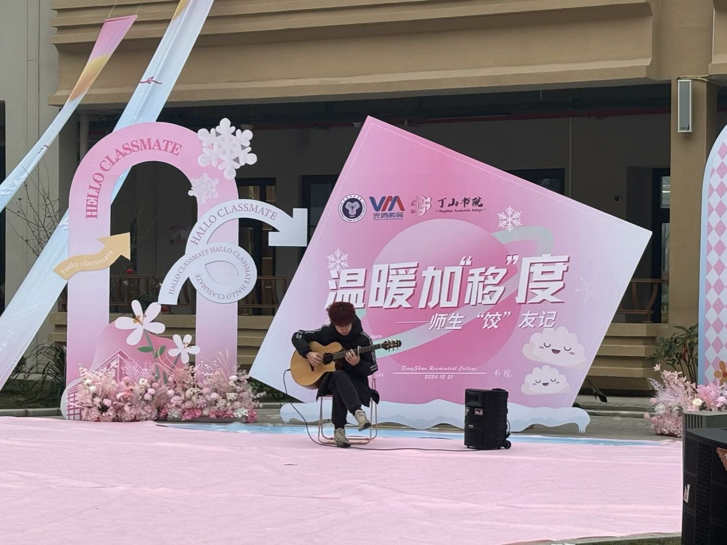 在饺子烹饪完毕之前,参与者们也没“闲”着。来自不同社团的同学们精心准备的表演闪亮登场。来自T.sparkle舞社的同学们以《Play With Fire》点燃了全场的氛围,让参与者们都能感受到如火般的温暖。而作为丁山书院“书院一小时”的常客,来自古剑书院/计算机学院的时海洋同学,凭借着往期音乐专场活动带来的“累累硕果”,与吉客beginning吉他协会的同学一起,为所有那些不辞辛苦努力生活的人们献上一首《无名的人》,同时结合由丁山书院精心制作的《移通守夜人》,向那些默默为我们遮风挡雨的校园守夜人表达了满满的感激之情。“越平凡悦不凡,致敬在各个岗位努力奋斗的‘无名的人’”。
