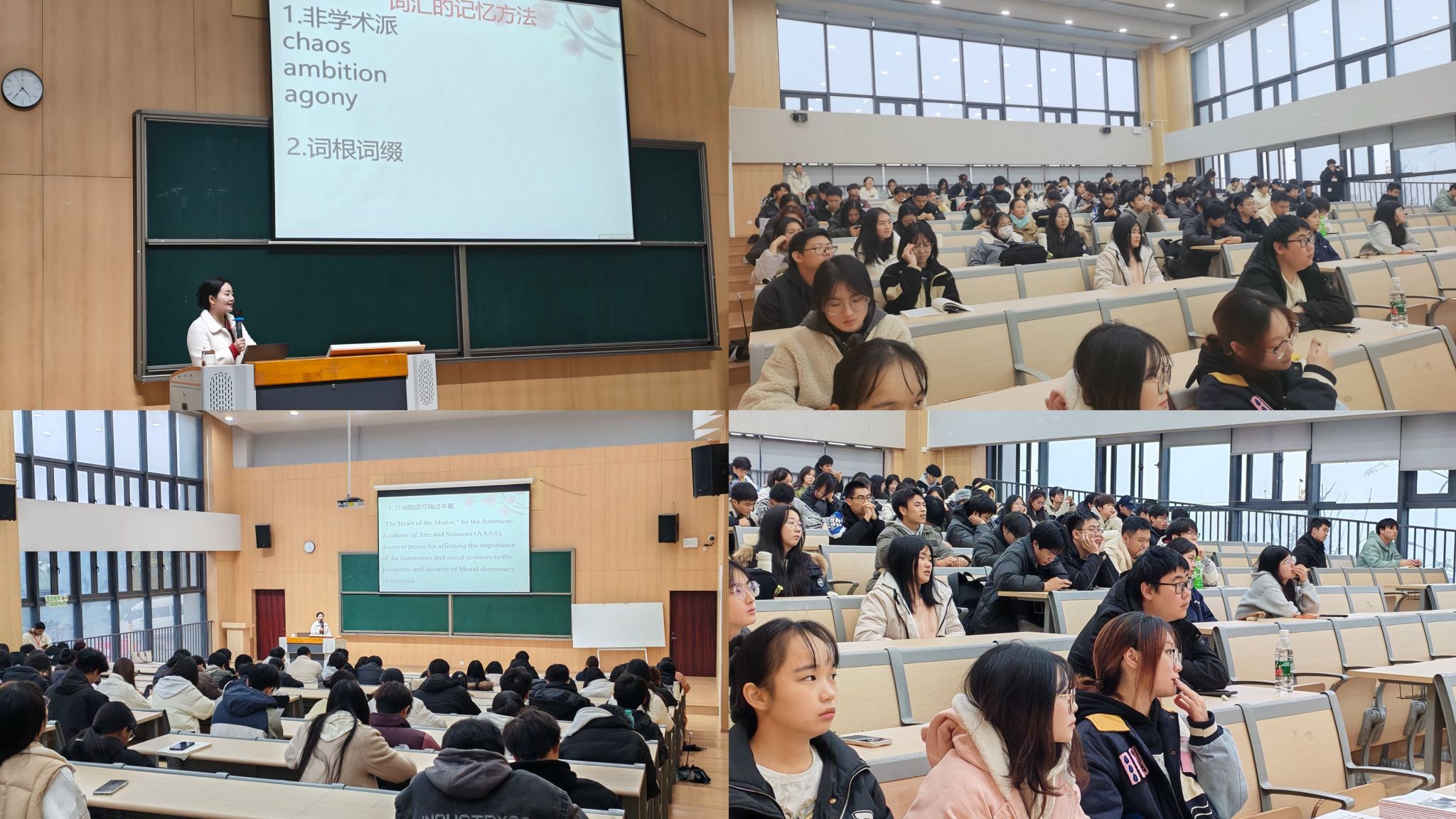 为帮助学子在考研政治备考中取得佳绩,北京大学访问学者、文都考研政治指导名师蒋中挺副教授到场传授政治科目备考经验。活动现场,蒋老师为学子们剖析考点精髓,提供了高效的复习策略。在蒋老师的讲解后,有学子表示他收获的经验是扎实地学习基础知识、灵活的应用知识以及实时关注时政对政治复习的效果十分重要。为助力大家在备考英语之路上披荆斩棘,成功登顶,重庆文都教研院院长胡勤敏老师为大家分享英语备考经验。胡老师将复杂的知识点化繁为简,通过实战案例生动讲解长难句分析、阅读技巧等难点,为学子答疑解惑。面对英语备考的难题,学子们表示掌握到英语备考技巧、学到高效的学习方法,也学会根据自己的实际情况制定学习策略,树立战胜英语的信心与决心。