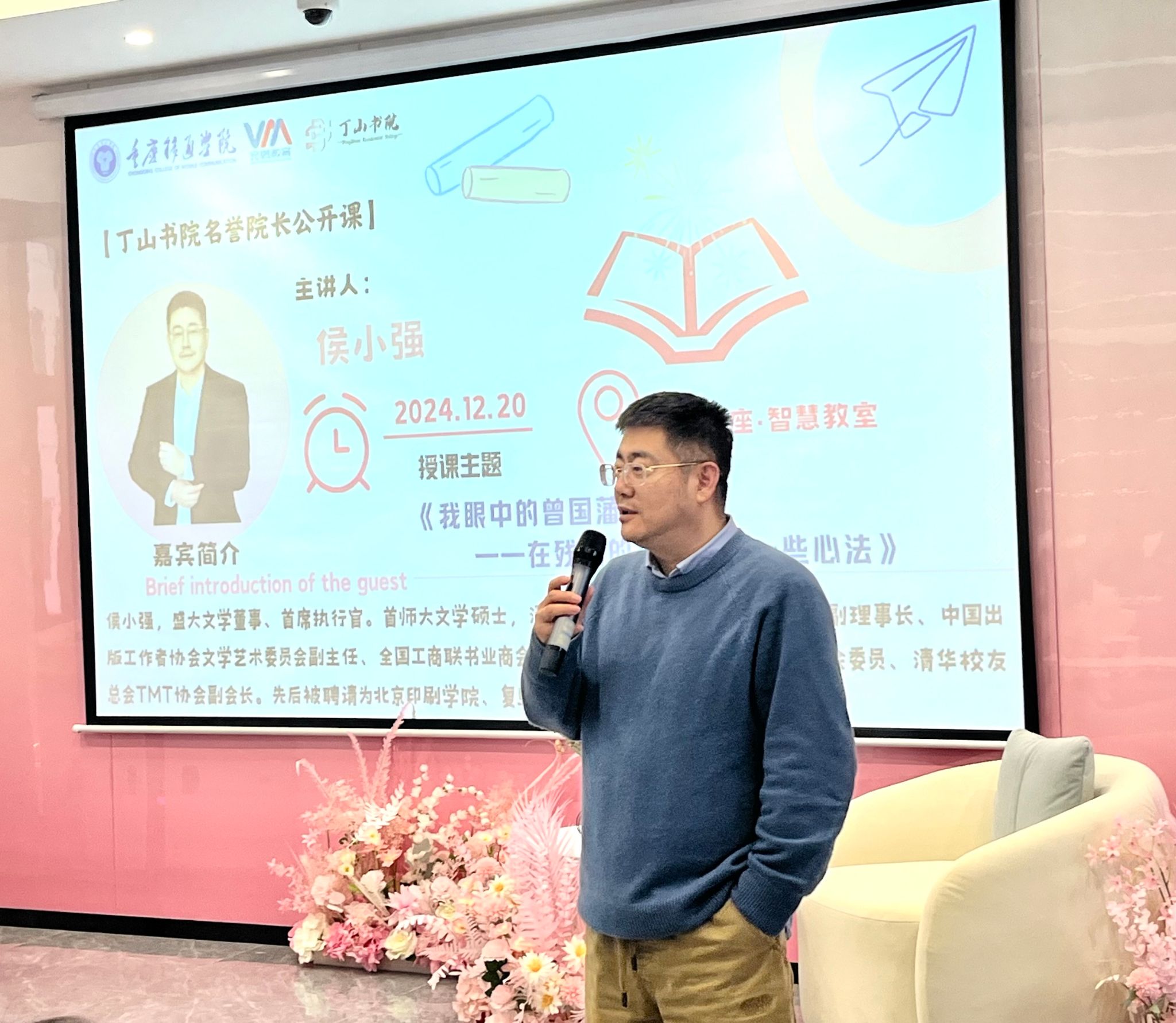 “绿野堂开占物华,路人指道令公家。”良师遇好学者,如春风化雨。2024年12月20日,在丁山书院处女座·智慧教室,丁山书院名誉院长,侯小强先生以《我眼中的曾国藩》为题,给同学们上了一堂生动有趣的公开课。