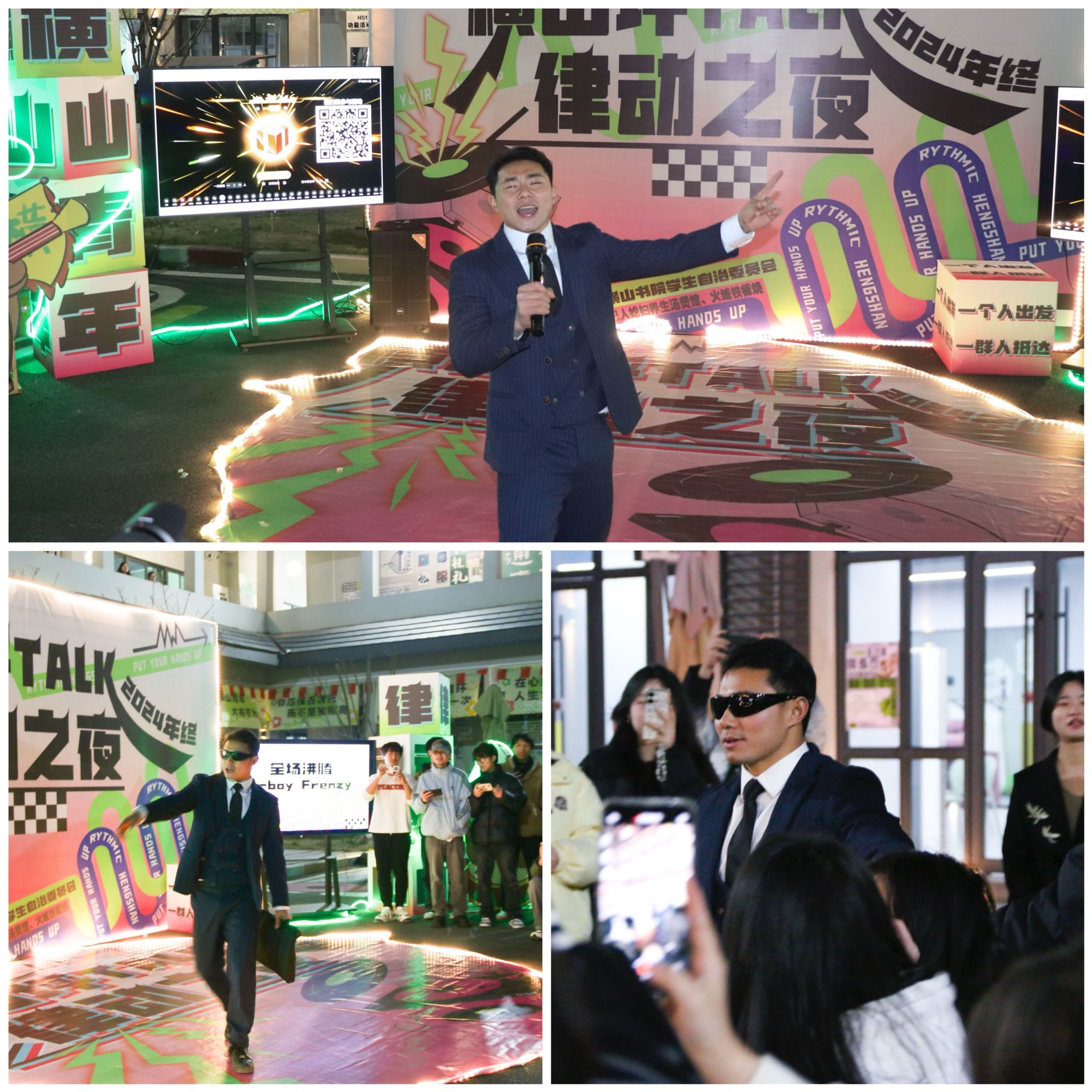 为着力打造社区共享与朋辈互动的新圈层,通过多元文化、学生成长和工坊实效三大核心内容,连接师生间的文化、知识、情感和态度,共同构建知识情感共享圈。横山书院于12月18日17:00在横山书院中庭开展“横山坪TALK”2024年终‘律动’之夜特别活动,邀请全国知名B-boy肖青天老师坐镇,300余名书院学子齐聚,通过工坊成果展演、学子成长分享、榜样人物激励、优秀学子表彰、社区交流互动等环节实现浸润共享、联结融合,营造了生动立体、生生不息的书院新环境,形成了别具一格的书院社交新格局。