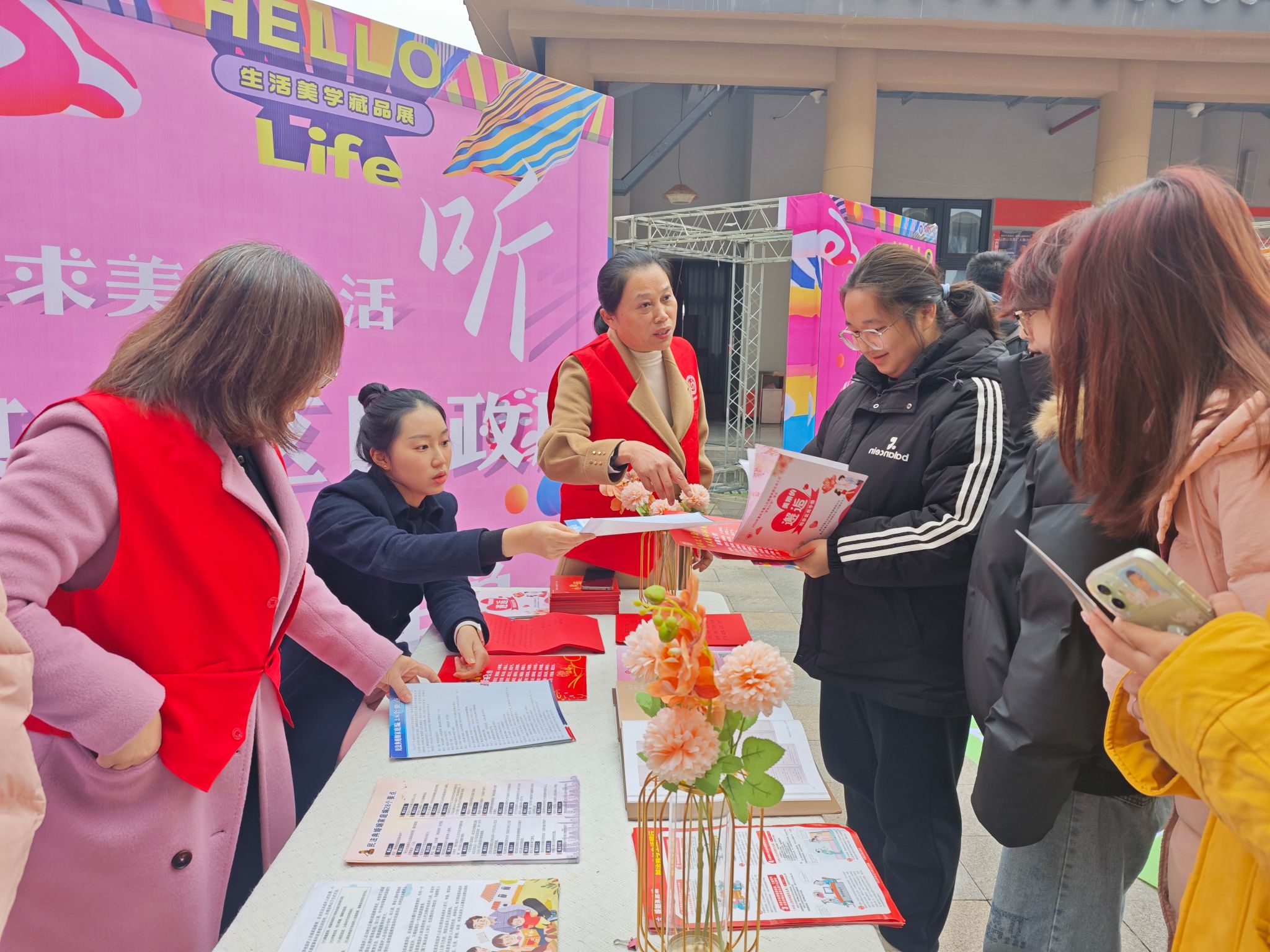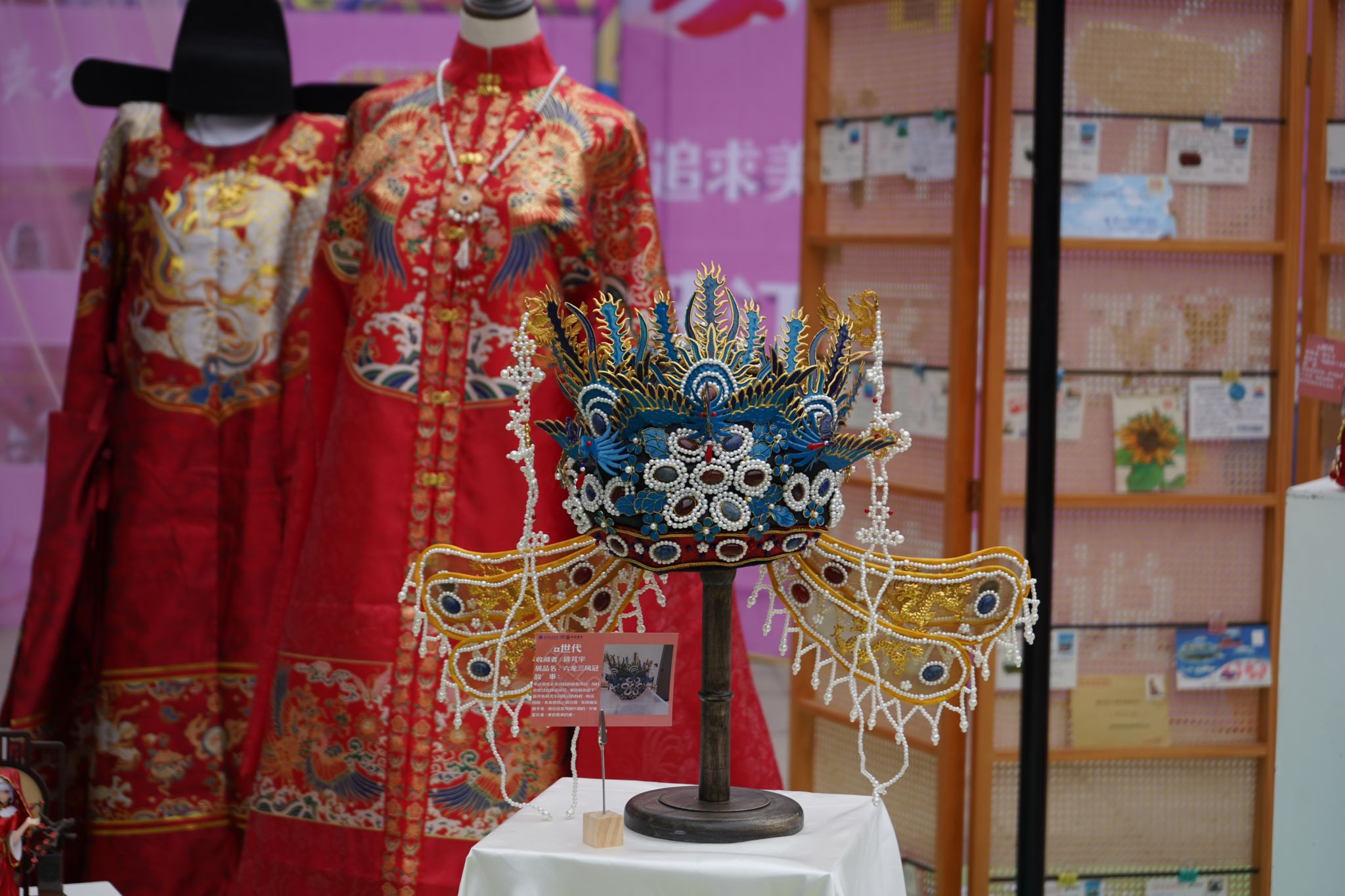 为响应国家积极构建新型婚育文化的号召,并激发观展师生对美好生活的向往和追求,本次藏品展以陈芃宇老师的婚服作为展区结尾,同时邀请到綦江区民政局的工作人员在现场为重庆移通学院的师生们宣传积极的婚恋观、家庭观,加强家庭家教家风建设。