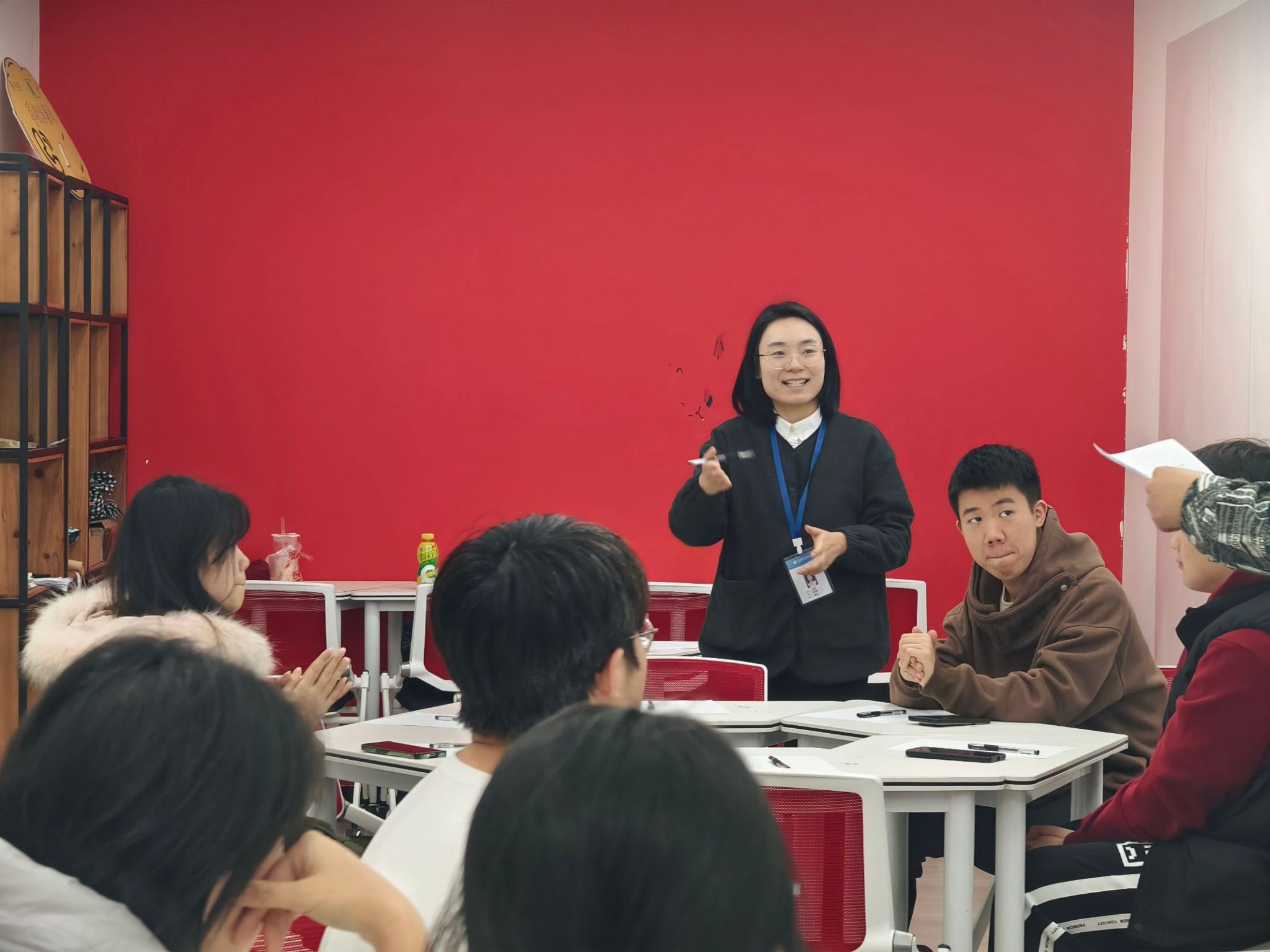 在本次成果评估中,A 组同学呈现出诸多亮点。唐蜜老师对其最后的展示成果表示肯定,指出该成果可行性与实操性都很强,在内容涵盖方面涉及角度全面,充分展现了 A 组同学在研究与整合方面的卓越能力。当然也有一些有待改进之处,其中较为突出的是发言人局限在个别人,这导致小组讨论氛围不够浓烈,未能充分激发全体成员的思维碰撞,使得部分潜在的优质想法可能被埋没。与之形成对比的是 B 组同学。他们在展示成果方面虽然略显不足,但小组成员在讨论环节的表现让人眼前一亮。每位成员都积极踊跃地发言,充分表达自己的见解与思考,营造出了浓厚的讨论氛围,这种积极的互动模式为未来在类似项目中的成长提供了宝贵的经验积累。