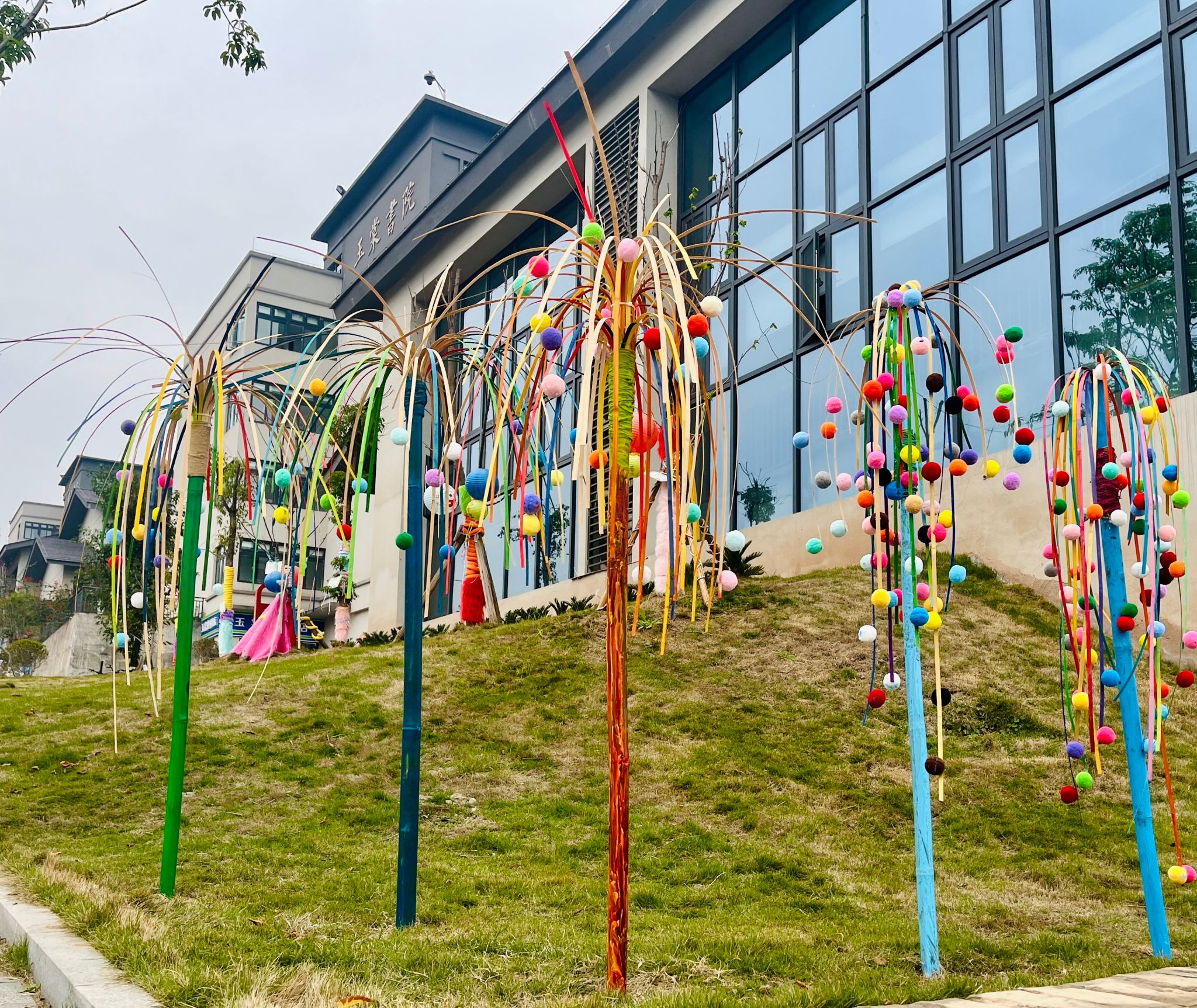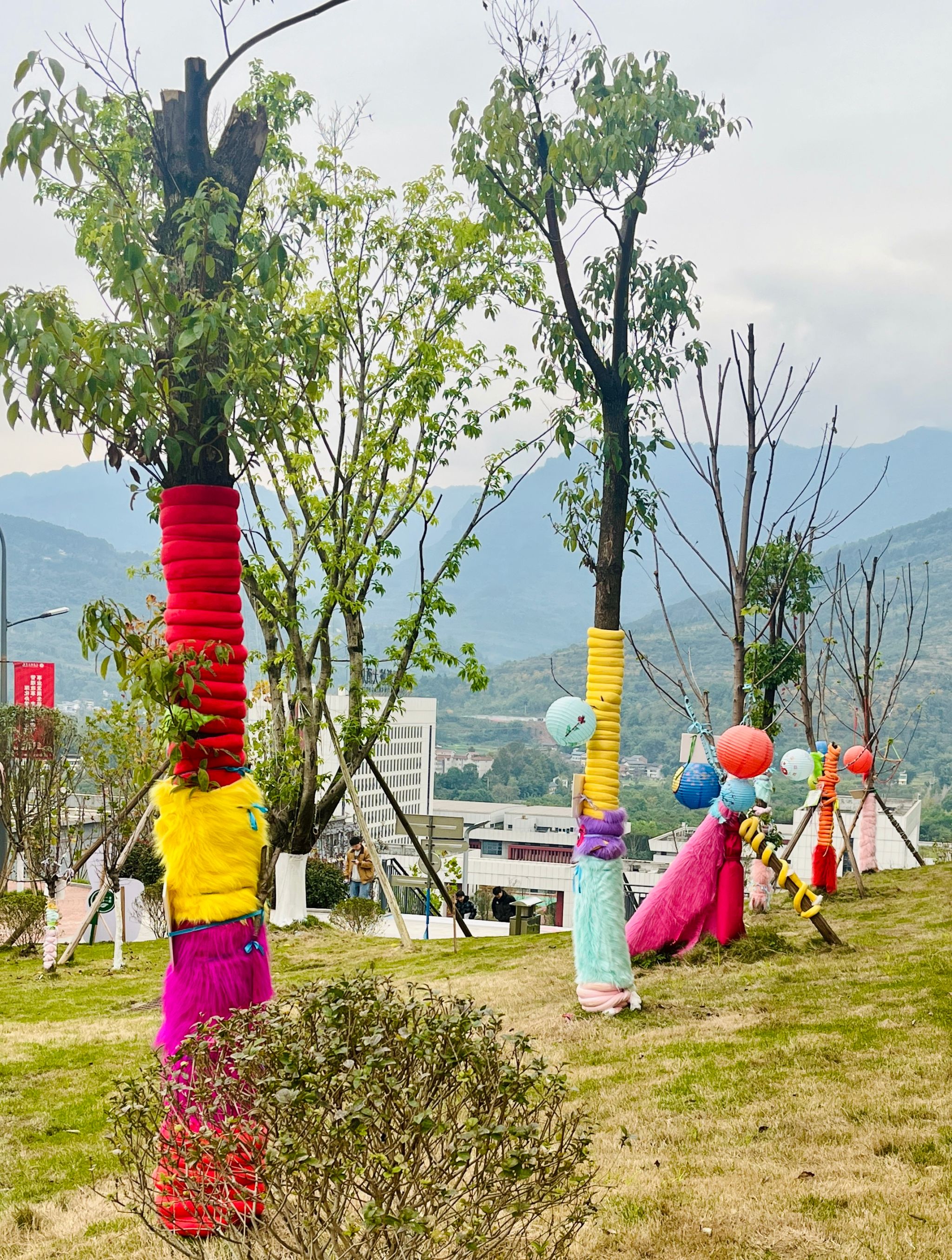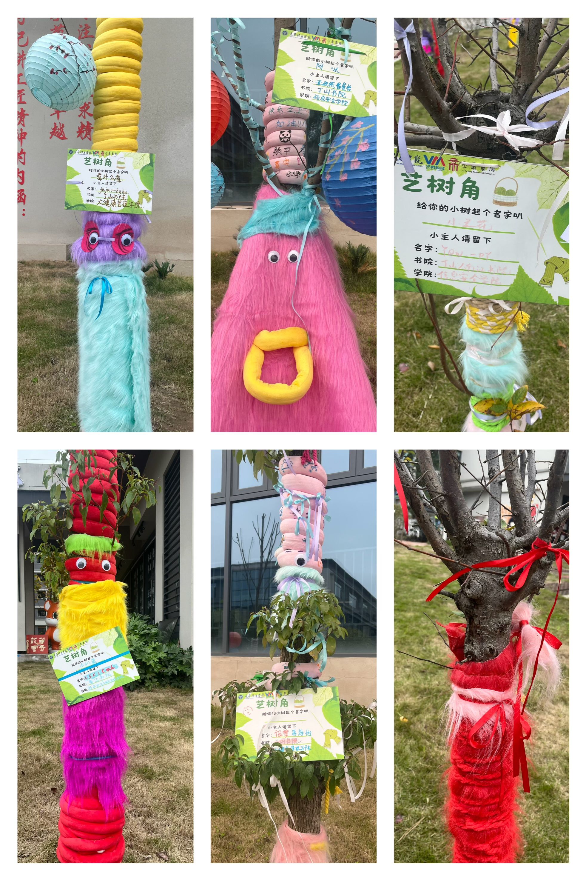 当艺术邂逅自然,玉棠书院 “艺树角” 系列开启!在冬日的凛冽中,凋零树木不再孤寂。学子们奇思妙想大迸发,运用形形色色材料,为小树精心定制专属 “冬装”。