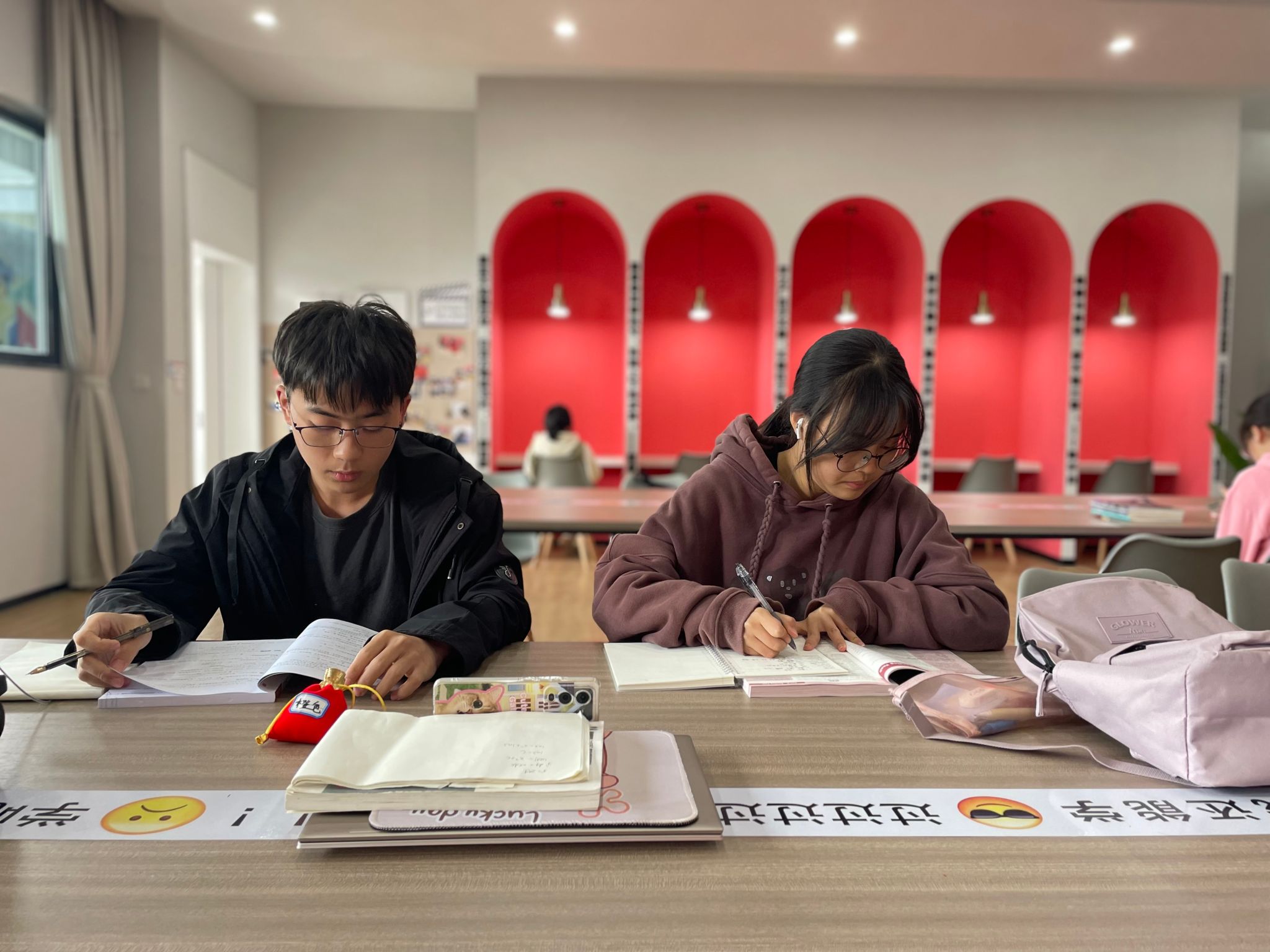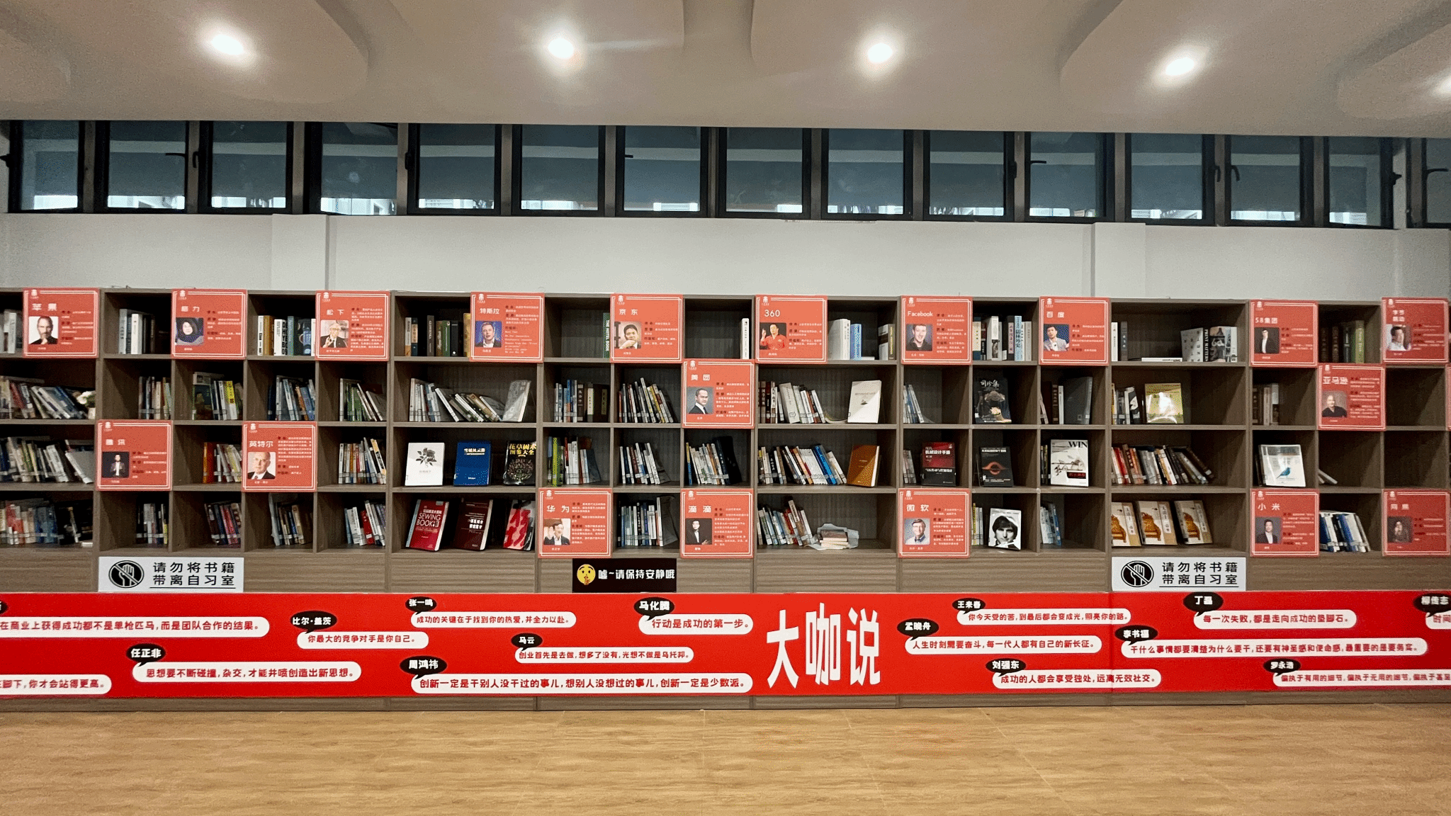 以专注学习为核心,书柜上精心陈列着大咖阅读人物介绍,引领学术风尚。小角落也被巧妙打造,营造出温馨而励志的学习氛围。在这方小天地里,学子们与知识深度相拥,思维火花尽情绽放,为梦想默默耕耘。