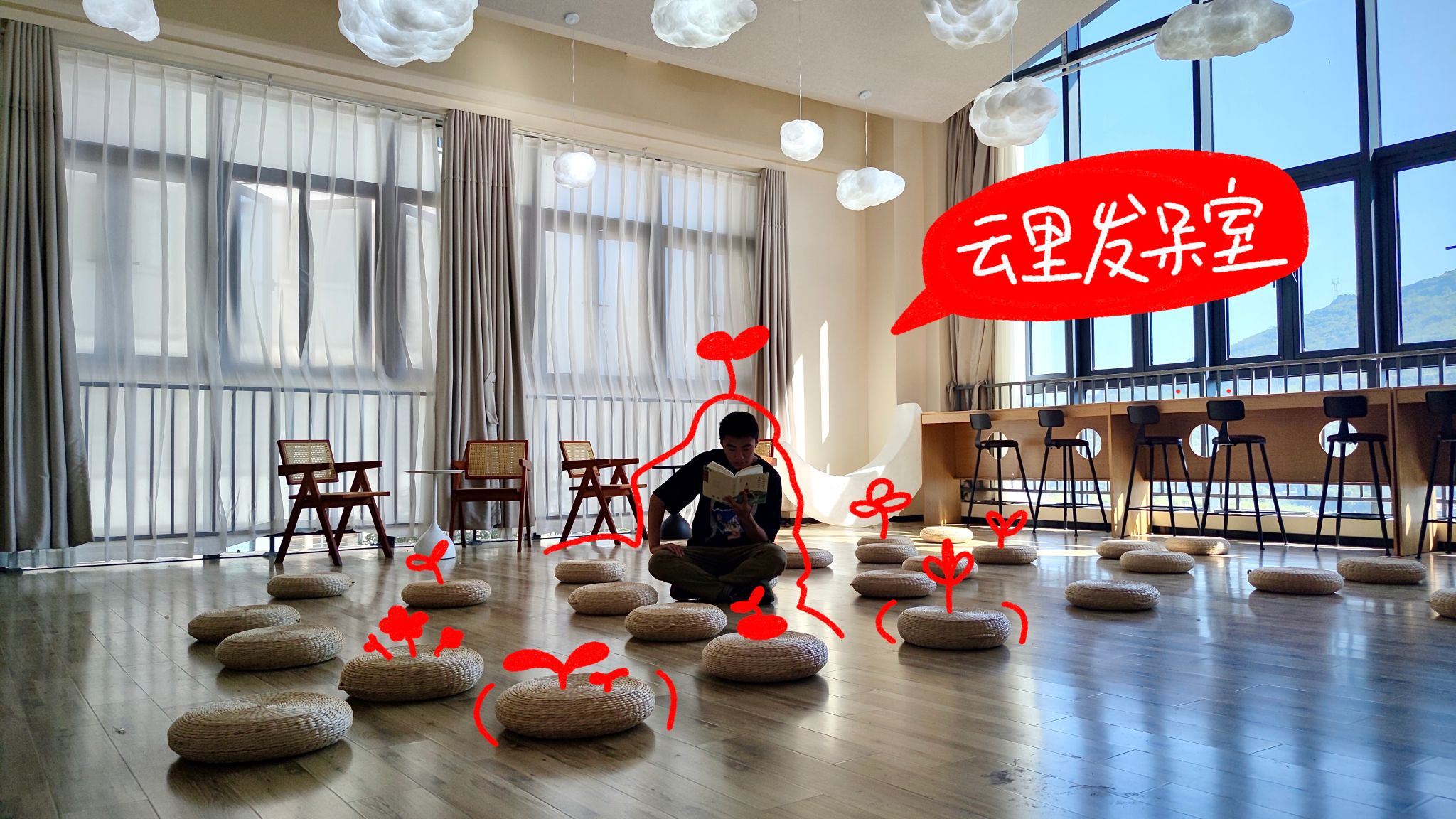 专为渴望逃离喧嚣、寻觅片刻宁静的学子们打造。在这里放下所有烦恼,尽情享受发呆的乐趣。慢下来用画笔感受呼吸的频率、做一个小马扎、写一封信,发呆角都能让你找到心灵的归宿。