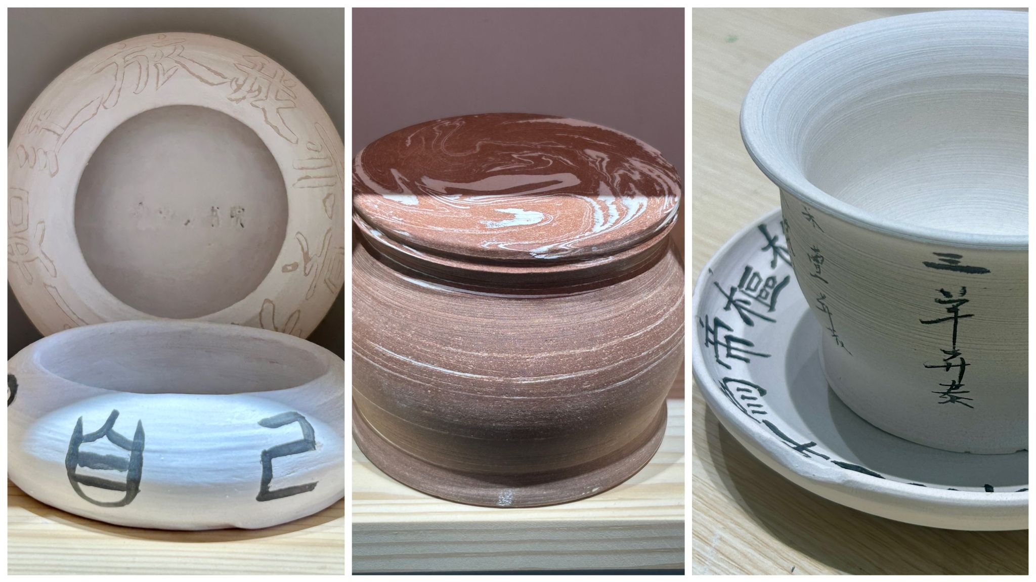 当深邃的釉彩遇上古朴的题词,艺术品就像被赋予了生命,静静地绽放着光彩。同学们大胆尝试,巧妙地将流动的釉色与题词布局融合在一起,他们手中的泥土,经过一次次的尝试与调整,逐渐展现出独特的风貌,每一次釉色的流淌、每一笔题词的落下,都仿佛在诉说着他们内心的故事与情感,因为满载着热爱与坚持,渐渐变成了蕴含山水之美、诗词之韵的艺术佳作。这份从泥土到艺术品的转变,让同学们深刻体会到了塑造的乐趣与成就感,也让他们更加珍惜每一次与泥土、与文化的亲密接触。