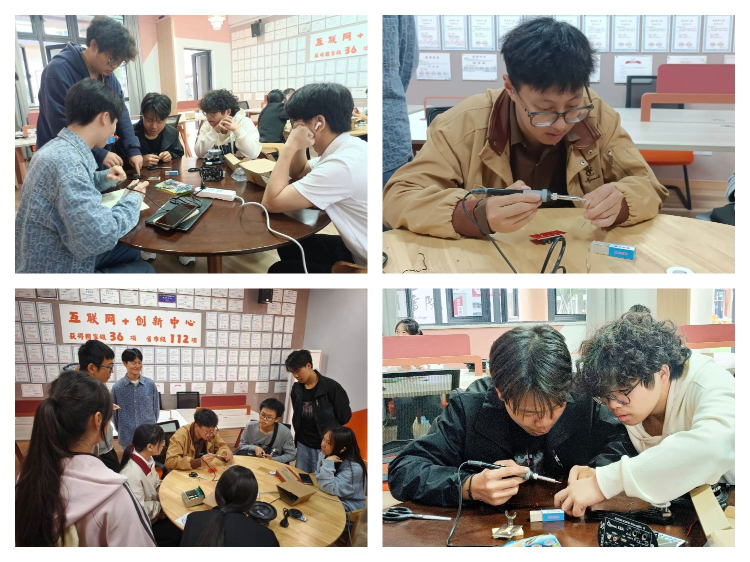 廖老师亲自示范焊接技艺,将锡丝比作连接之“胶”,让同学们在实践中掌握关键技术,为后续的箱体拼接打下基础。