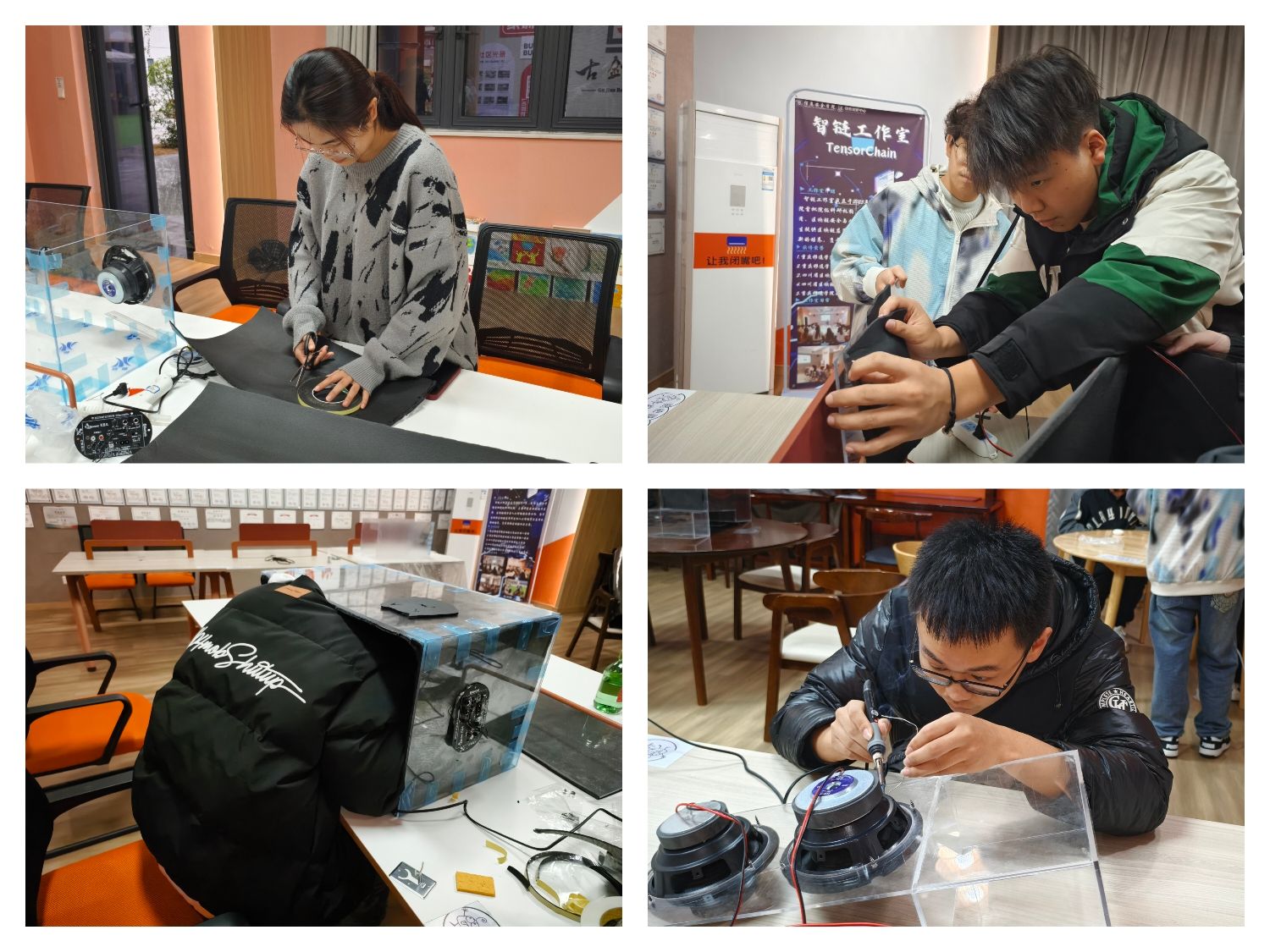 同学们在确保箱体结构稳固,随后进入美化阶段,赋予音响独特的外观风貌,最后精心调试音效,让同学们亲身体验自己打造的音响奏响的美妙乐章。