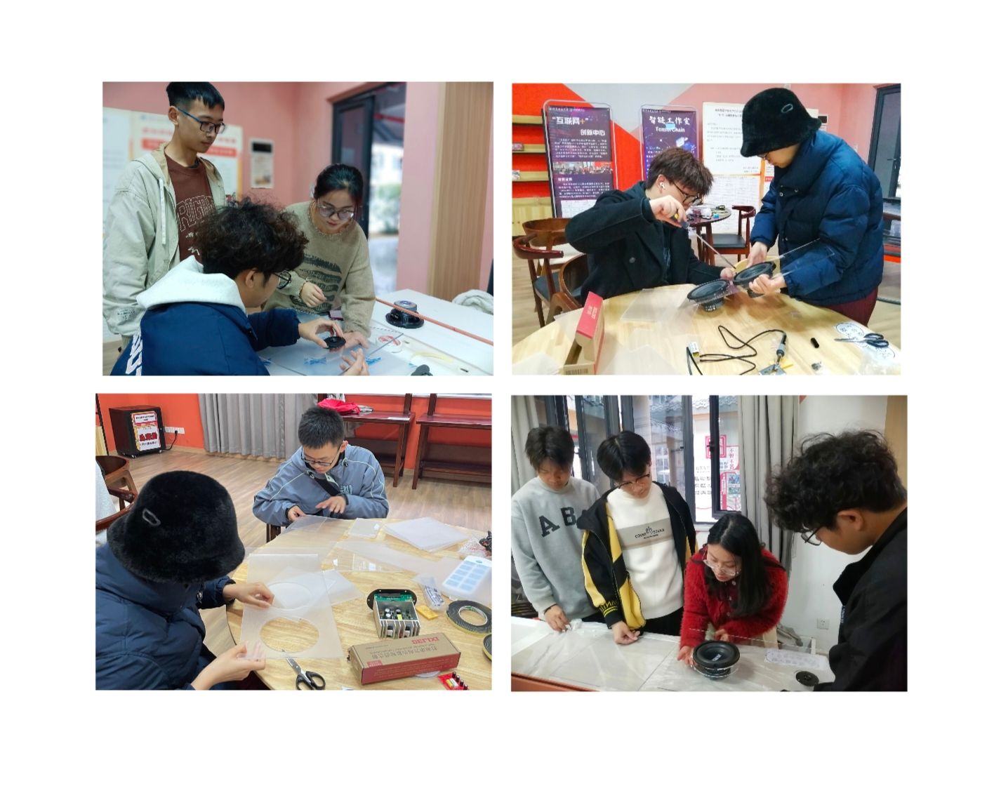 本学期,古剑书院携手戏剧影视学院推出系列活动。从音响发声原理的深入探究,到箱体设计的精心雕琢;从焊接技艺的熟练掌握,到拼接组装的完美收官,每一期都见证着音响在同学们手中由精细迈向精美,逐步蜕变。