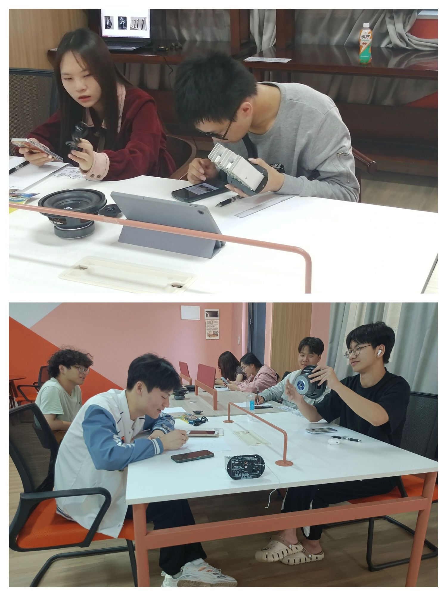 戏剧影视学院辅导员廖炳屹老师带领同学们深入音响制作原理,开启设计智慧之门。从障板式高音的清亮到密闭式低音的忠实,每一细节都为同学们的创意制作打下坚实基础。