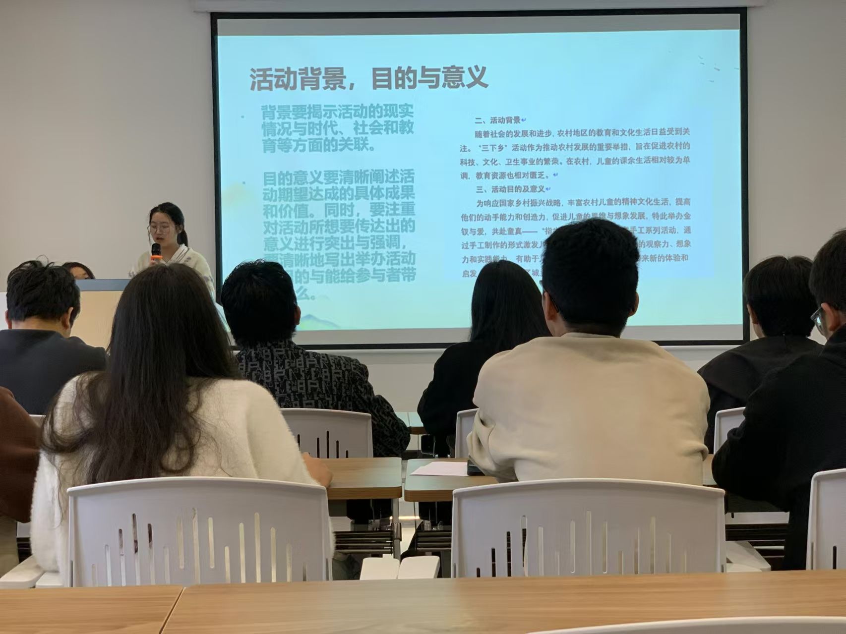 在活动组织这块儿,培训会就像一场精彩的幕后揭秘,把活动策划和执行的每一个环节都剖析得清清楚楚。它就是要把干部干事们的创新能力和问题解决能力提升到新高度,让他们能打造出那些让人眼前一亮、心痒痒的活动。培训会上,活动实践部部长余霞拿出了她的经验秘诀,用她的经验,在策划案撰写环节进行展示,强调策划案的重要性,分享了撰写技巧和方法。通过一个个生动的案例分析,参训人员学会了如何构思和组织策划案,确保项目能够顺利落地,就像种下希望的种子,期待着开花结果!