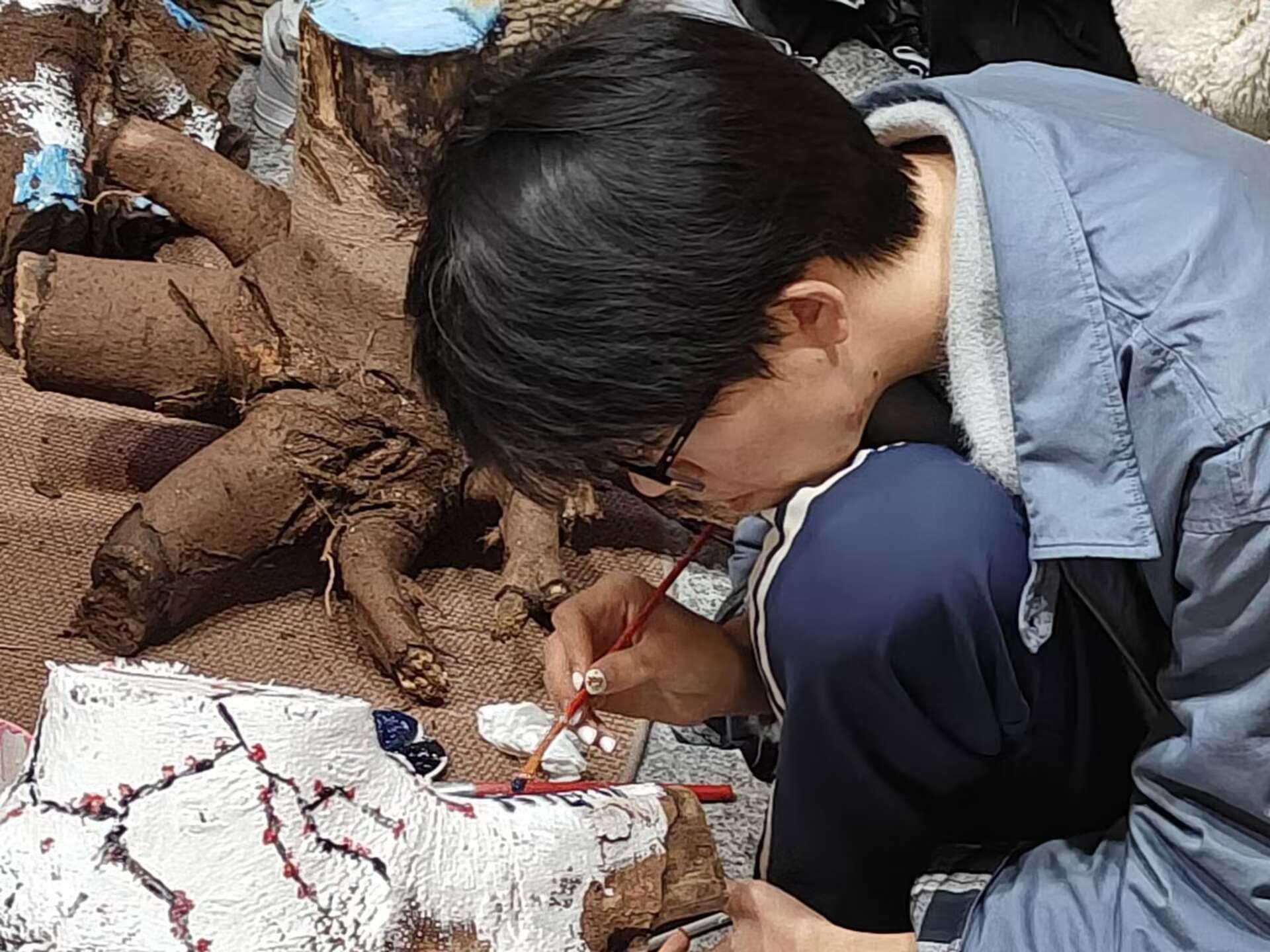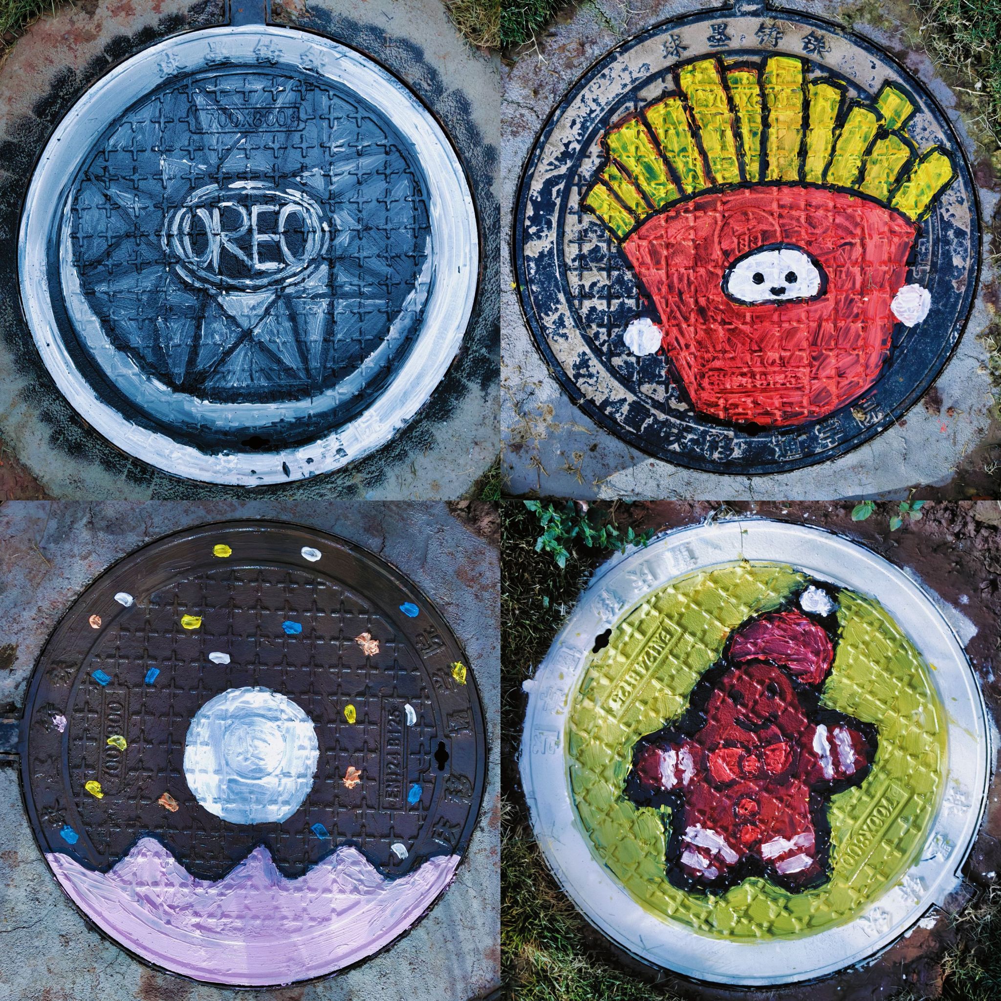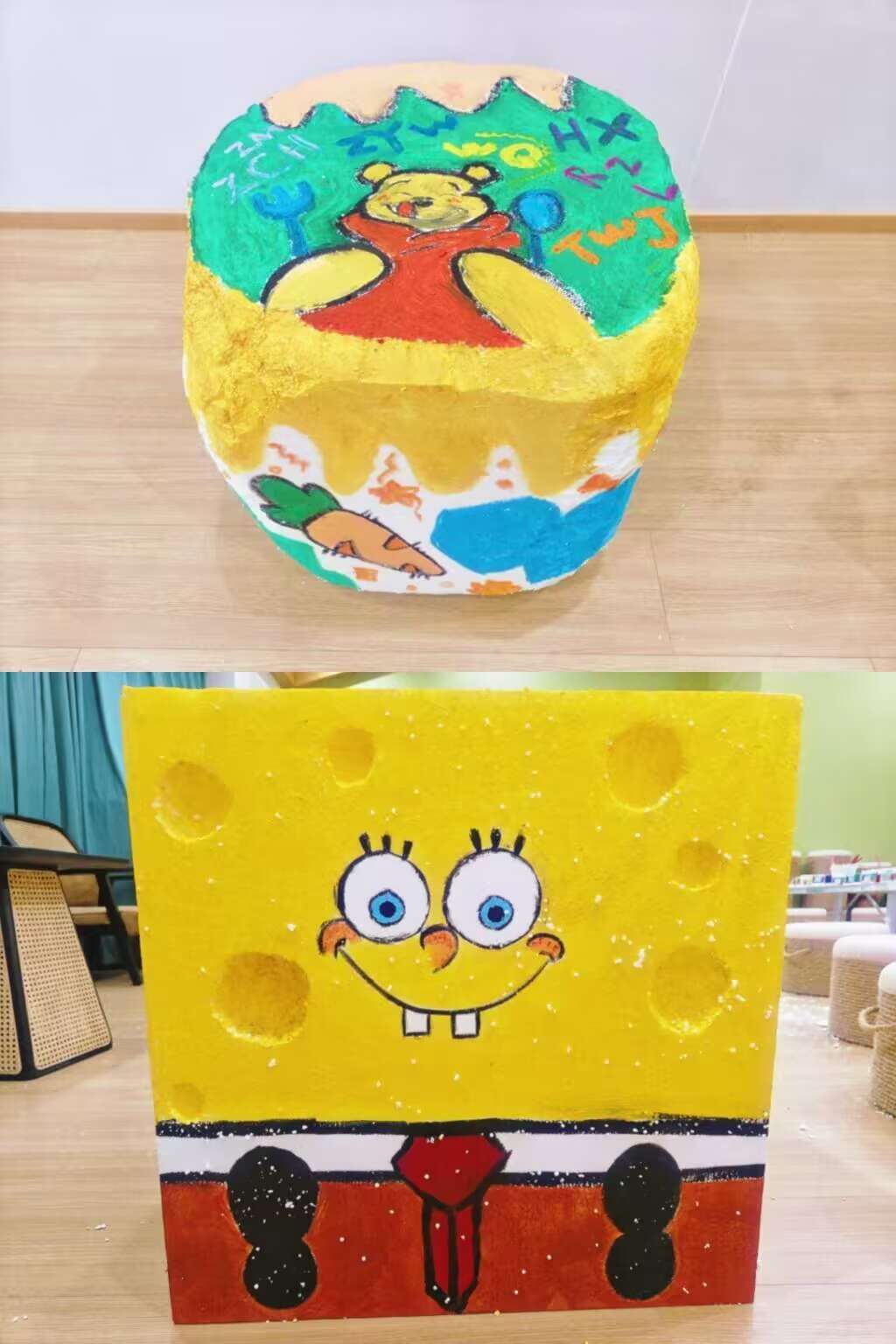 手绘井盖变“景盖”?在灰尘遮罩的井盖前,每位参与者都摇身一变成为故事的编织者。从回忆感满满的卡通IP形象,到栩栩如生的动漫IP人物,再到令人垂涎欲滴的美味食物,它们能否一搏你的笑颜?镜头转换,书院角落里,沉默无言的木桩守候着岁月流转,迎来了生命的蜕变。活动聚焦于“桩上彩绘”的艺术实践,以木桩为画布,挥洒创意,勾勒出一幅幅生动的艺术画卷,让原木风书院变得“有木有样”!“泡沫再生”接踵而至,手工创意结合斑斓色彩,予泡沫于新生。每一件作品都承载着参与者独特的情感,活动不仅展示了手绘创意的魅力,更体现了师生共同装点书院的多样性。