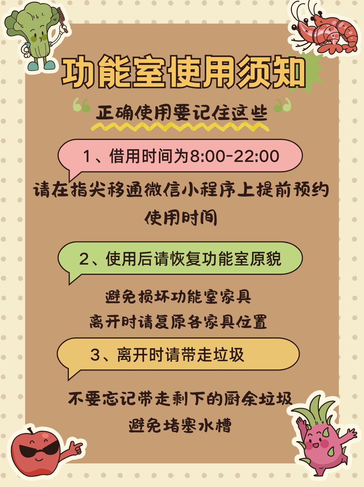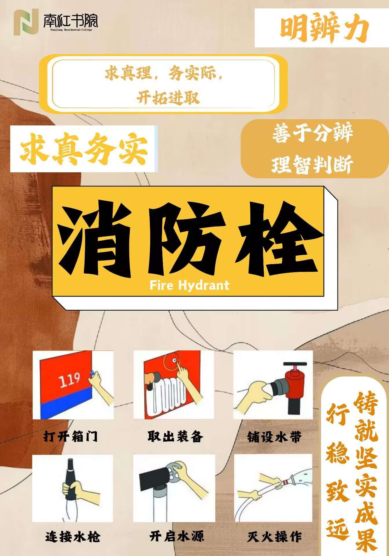 书院一隅,有一面与众不同的墙画。消防栓使用指南,以守护者的身份,时刻守护着学子们的安全;垃圾分类提示语,如轻柔的文明之风,潜移默化引导同学们养成环保习惯;功能室使用须知,细致指导同学们关于功能室的正确使用方法,维持环境的整洁有序;阳光房“小洞天”,为同学们开辟出一个温馨舒适的角落,提升空间内的大幅美感;更有众多特色上墙设计等你一观。它们以独特的方式融入书院,塑造着既美观又有内涵的空间环境,诠释着书院环境育人的文化理念。