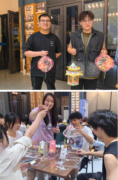 9月17日马克思主义学院联动綦河书院开展了本学年第一学期中国故事大讲堂第1期——“提灯揽月汇清欢 非遗花灯庆团圆”主题活动。活动伊始,师生共同观看了非遗文化双语短片《惊艳世界的中国文化名片:灯会》。随后在贺老师的非遗小课堂中,系统研习了花灯的历史起源、发展过程、种类、民宿特色、文化价值、民和传承现状。实践环节,师生利用现有材料,围坐在一起,聚精会神地制作莲花灯、宫灯、兔子灯、鱼灯等不同种类的花灯。在制作过程中,同学们相互学习、互相交流,把传统花灯工艺与现代创意审美相结合,制作出独具特色的作品。