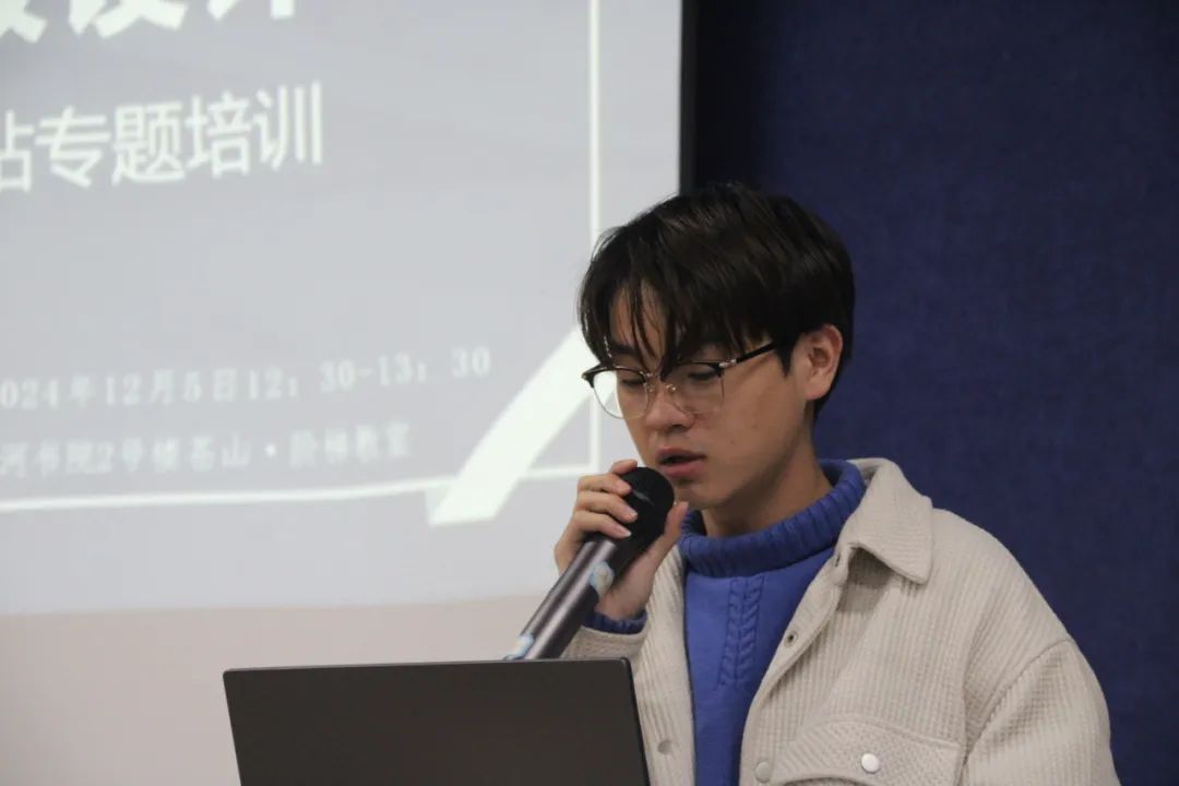 第二期培训则聚焦于如何拍出好的活动照片。来自戏剧影视学院的李虹漫学姐通过生动的PPT讲解和有趣的问答环节,为干部干事们带来了一场关于活动摄影的精彩讲解。从活动摄影的基础、主要技巧和案例分析三大环节为大家深度剖析摄像的干货,大家在李虹漫学姐的讲解下,不仅了解到捕捉活动精彩瞬间的方法,还学会了如何高效管理摄影项目,提升了干部干事在活动摄影方面的综合能力。