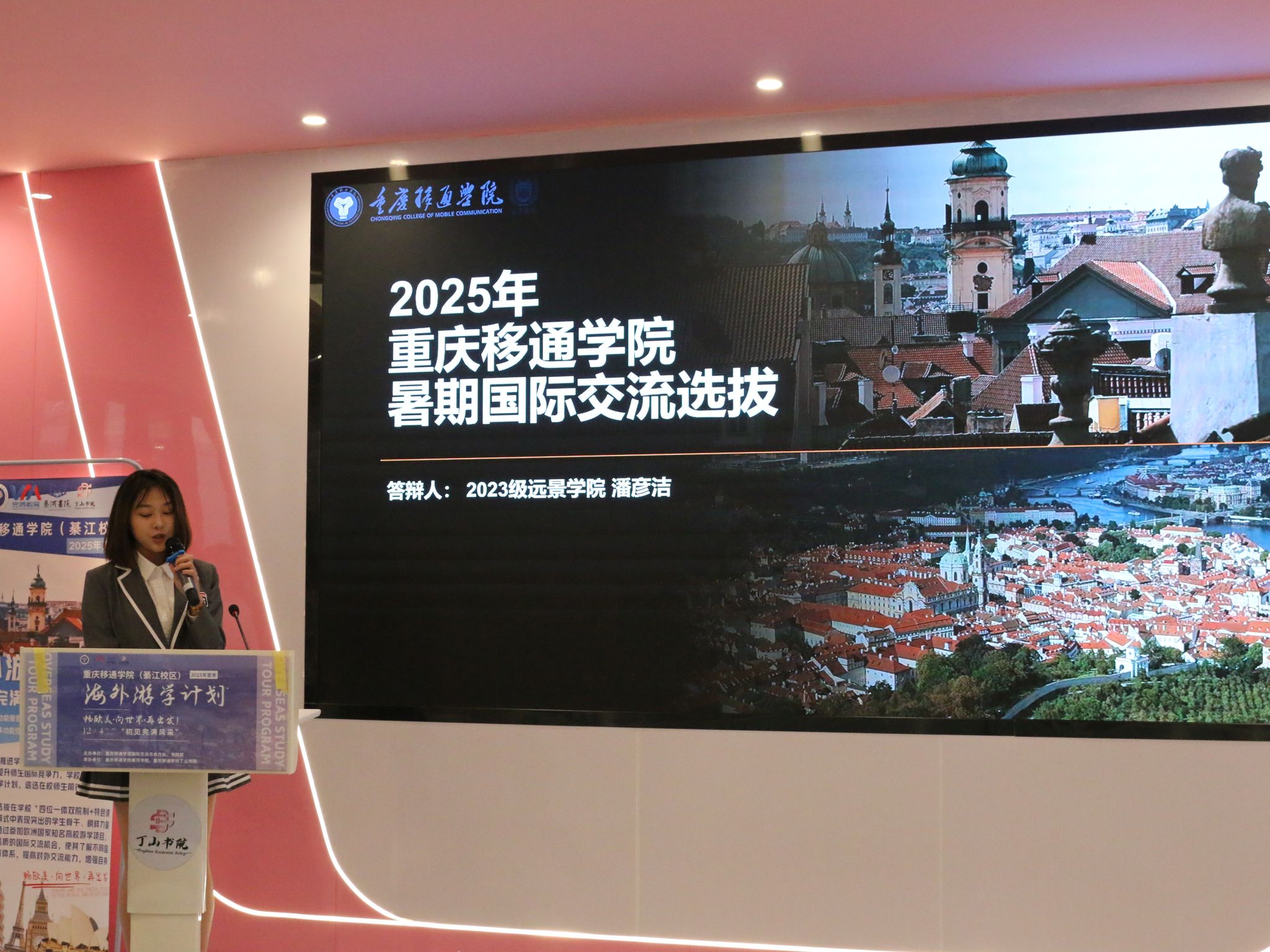 学校在“四位一体双院制+特色课程”育人模式下,一直致力于为学生搭建多元化、全方位的国际交流平台。此次2025年夏季海外游学计划答辩初赛的成功举办,不仅为重庆移通学子们开辟了一个展示自我、追逐梦想的优质平台,更是极大地激发了广大学子对国际交流学习的浓厚兴趣与强烈热情,有力地推动了校园国际化氛围的营造与深化拓展。相信在接下来的决赛中,晋级选手们必将带来更为精彩绝伦的表现,让我们共同满怀期待,静候佳音!