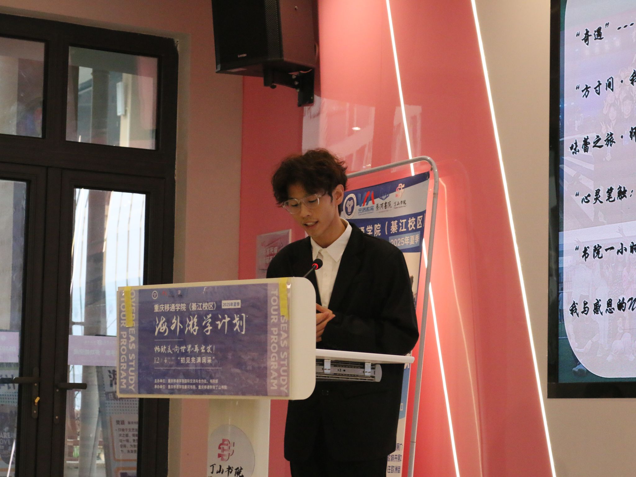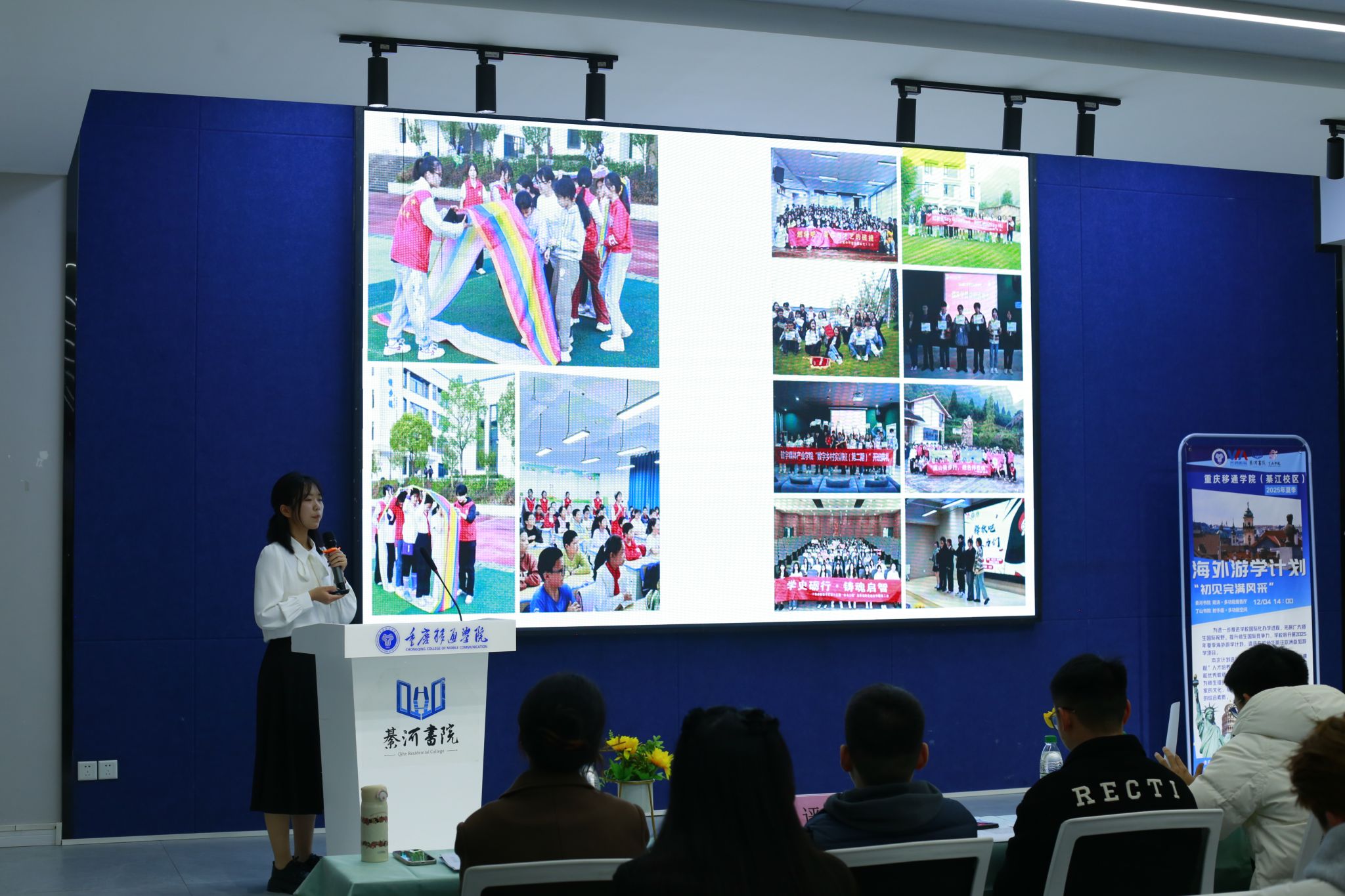 为进一步深化学校国际化办学进程,拓宽师生国际视野、丰富人生阅历,由国际交流与合作处、书院部主办,綦河书院、丁山书院联合承办的“2025年夏季海外游学计划·初见完满风采”于12月4日分别在綦河书院2号楼QH222观涛·多功能报告厅、丁山书院DS107射手座·多功能空间同步开展。此次活动,吸引了众多怀揣游学梦想的学子参与,现场气氛热烈且高涨。