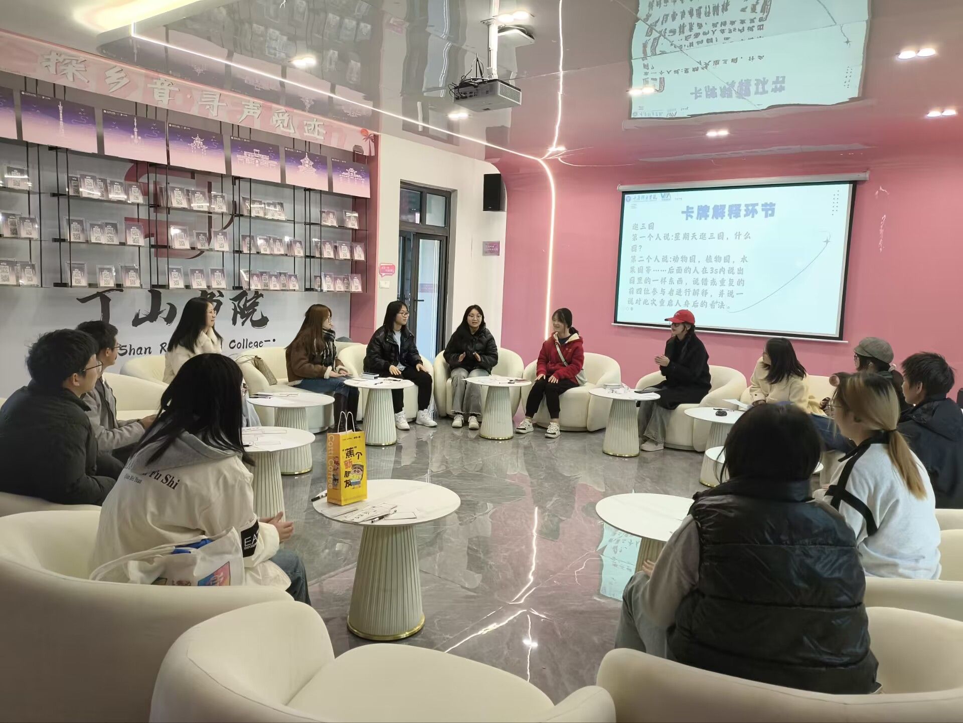 连绵的秋雨过去,冬天的神秘与魅力悄然降临了丁山书院,宣告着一场新的冒险之旅在丁山书院拉开帷幕。11月27日这天,丁山书院的天秤座·朋辈交流中心热闹非凡,参与者们聚集于此,共同用无尽的勇气书写着一段崭新的人生篇章。在这里,每一张卡牌不再是一块简单的硬纸板,而是一次改写命运的契机,一场用勇气探索未知的奇妙旅程。参与者们的好奇心与探索欲被彻底点燃,这是一场游戏,更是对全新世界的丰富体验,每一步都充满了无限可能。