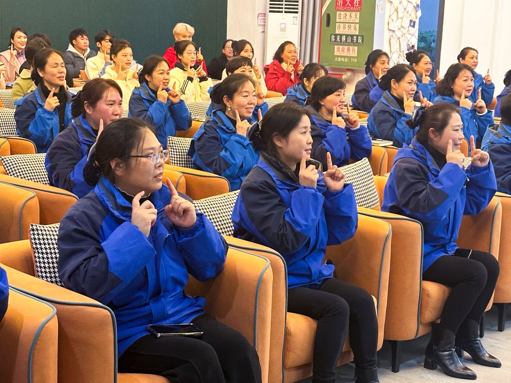 此外,横山书院携手学生处、胡贝儿礼仪服务中心,开展礼仪培训之走进宿管专场。工坊同学们大方展示自我,与宿管老师们分享礼仪培训心得,加深了大家对于日常礼仪的了解,也让同学们与“宿管阿姨”们的情感链接更加深刻。