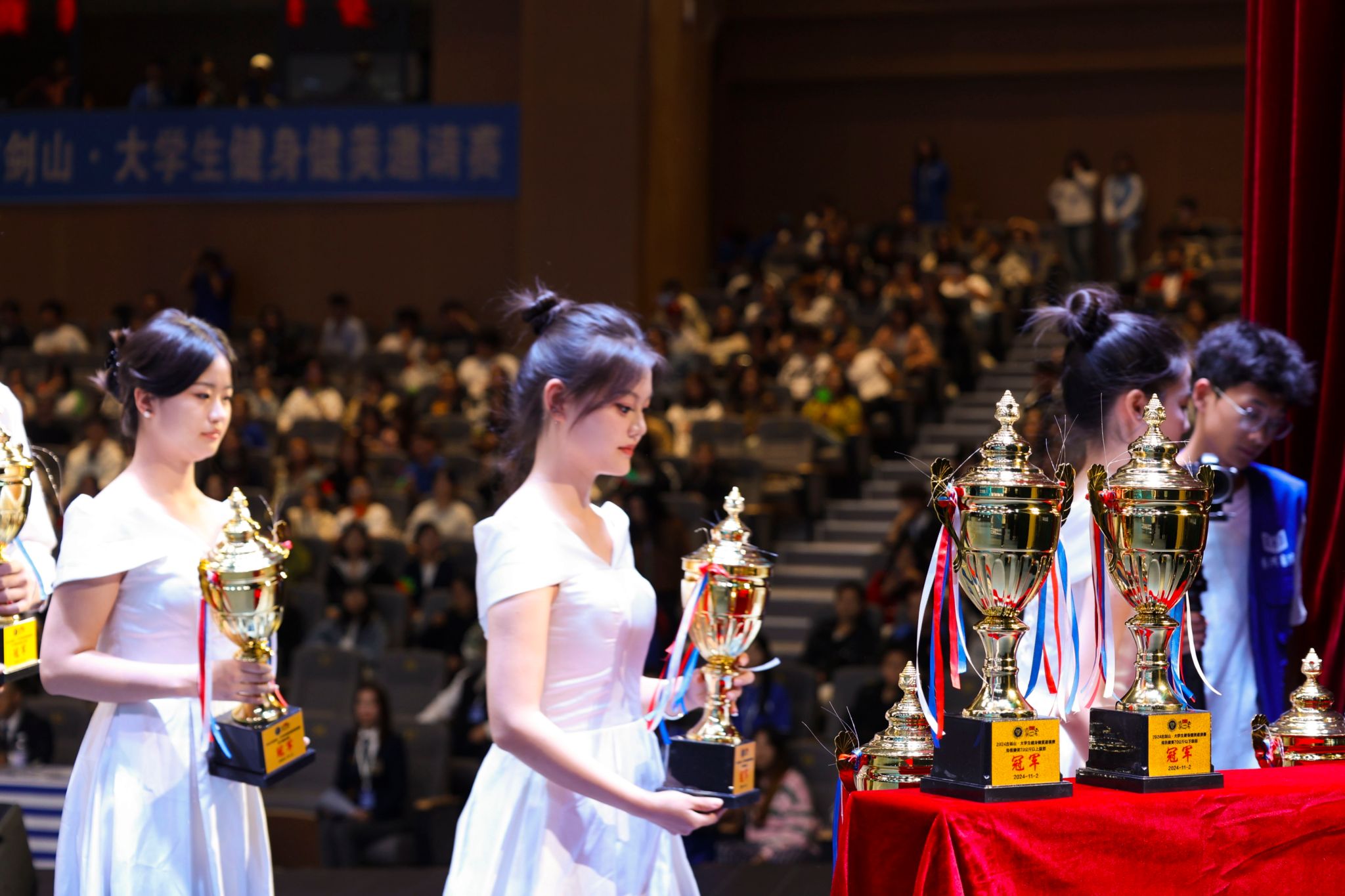 为增强同学们在实际情境中的应对技巧,指导老师本月特别加强了应对实际场合的重点培训。在2024古剑山·全国健身健美邀请赛、2024校园啦啦操大赛以及青年发展型城市规划设计大赛的颁奖仪式上,同学们以从容不迫的风度展现了他们的专业素养,赢得了来自校内外多方的广泛关注和高度评价。这些赛事活动不仅为他们提供了实践的平台,也增强了他们在礼仪规范上的自信。