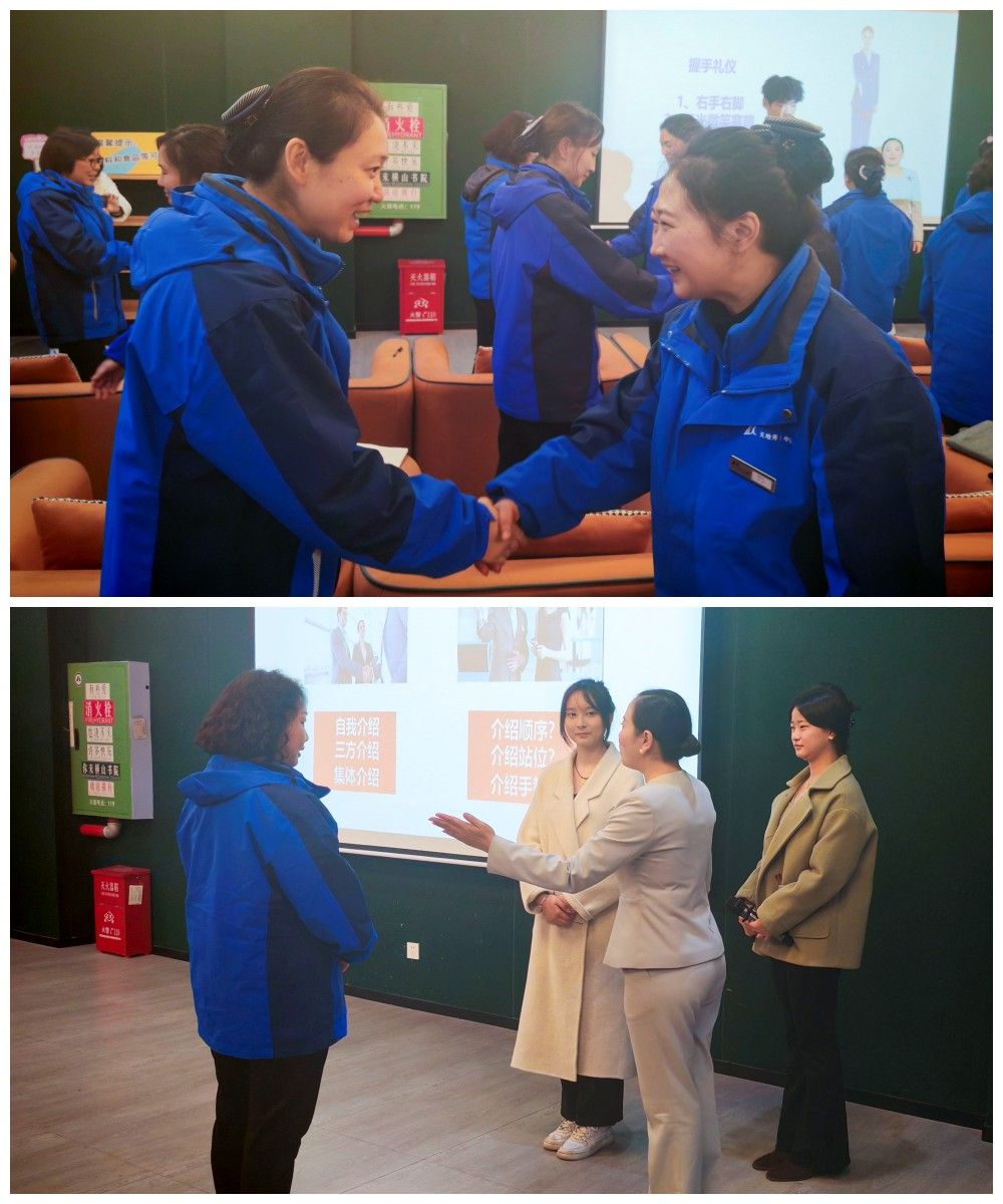 在礼仪培训前期,为更好的针对固定工坊成员展开专项训练,刘春兰和胡洪利老师通过互动问答的形式,与同学们们深入探讨礼仪知识。这种教学方式不仅加深了他们对礼仪的理解,也为他们提供了一个新颖而清晰的视角。老师们精心设计的问题,针对每位学生的具体需求,量身定制了个性化的培训方案。在细致中激发学生热情,确保他们能够以最佳状态迎接即将到来的培训课程,从而获得更高质量的学习体验。