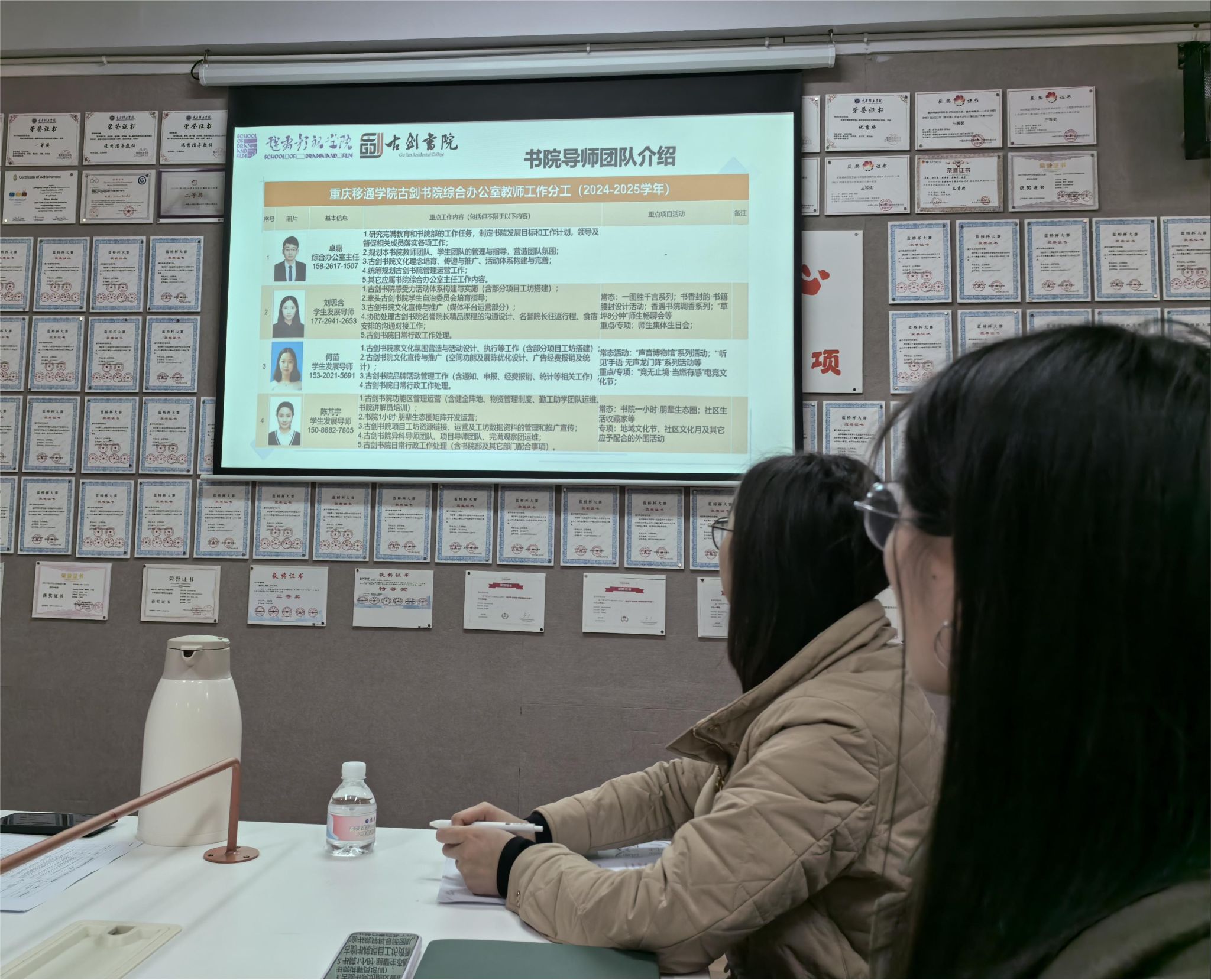 会议在轻松而热烈的氛围中拉开帷幕。首先,古剑书院学生发展导师刘思含为与会人员详细介绍了古剑书院的基本情况。她指出,古剑书院不仅拥有一支经验丰富的导师团队,还配备了功能齐全的学习和生活空间。并通过一系列特色活动,营造了浓厚的家园氛围。同时,她还分享了书院入住学生的基本情况。随后,戏剧影视学院双院融合专岗教师廖炳屹就学工教师团队的基本 情况进行了讲解。他详细介绍了每位老师的分工情况和工作范畴,使与会者对双方的教师团队有了更加全面的了解。这一环节不仅增进了双方教师之间的了解,更为后续工作的开展提供了便利。