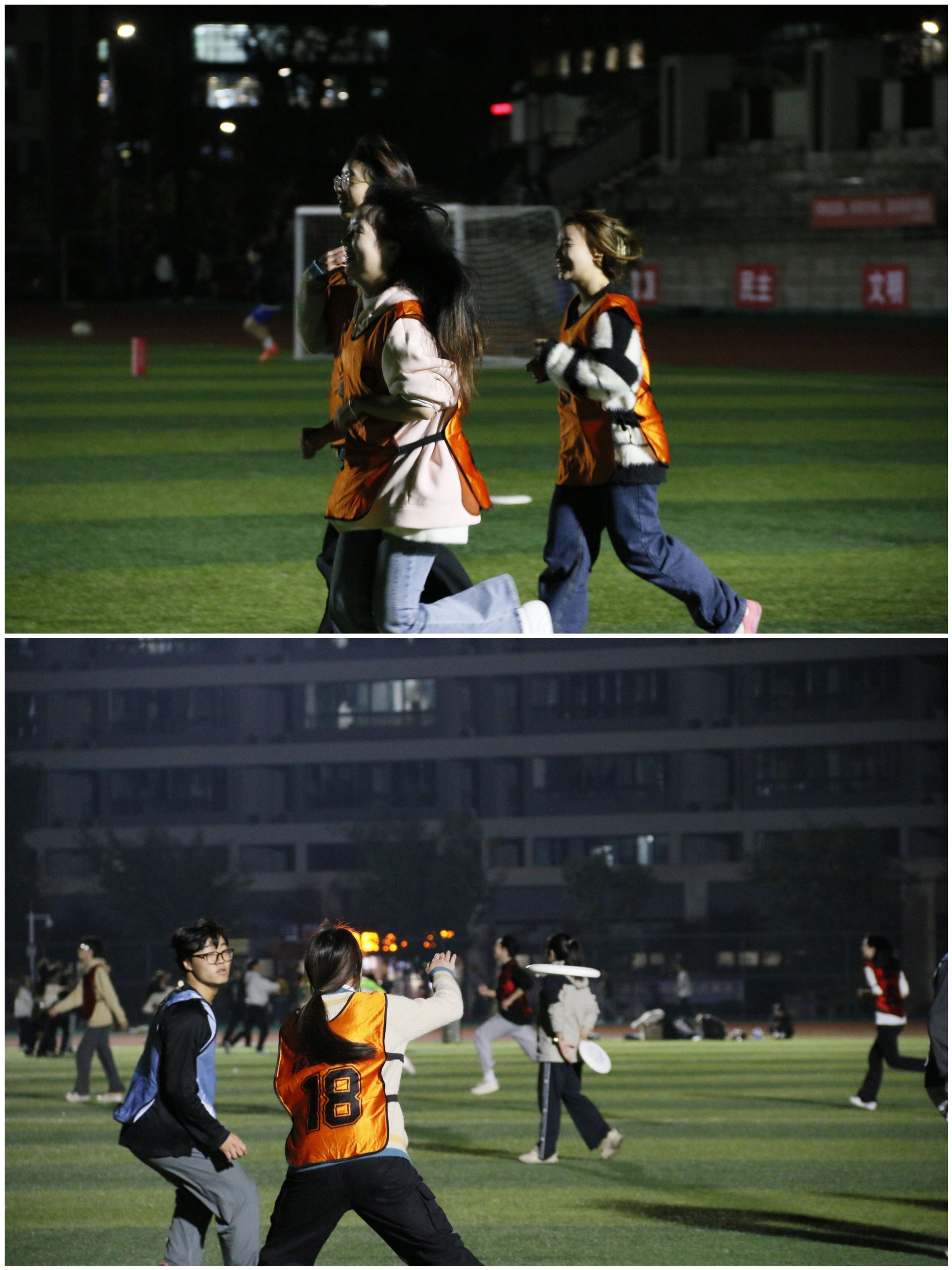在快节奏的现代生活中,寻找健康、有趣的社交方式!为拓展学生运动视野,推广新兴时尚的体育运动,营造积极向上的校园运动氛围。在飞盘校队的支持和指导下,横山书院特邀大健康学院任教老师、飞盘专业运动员罗明珠老师于11月20日晚上19:00在校园绿茵场上,以飞盘运动为主线开展了全速热练行动第13期活动,来自不同书院、不同学院的80余名学子们打破传统社交壁垒,尽情释放、快乐奔跑,呈现了一场酣畅淋漓的校园飞盘友谊赛。