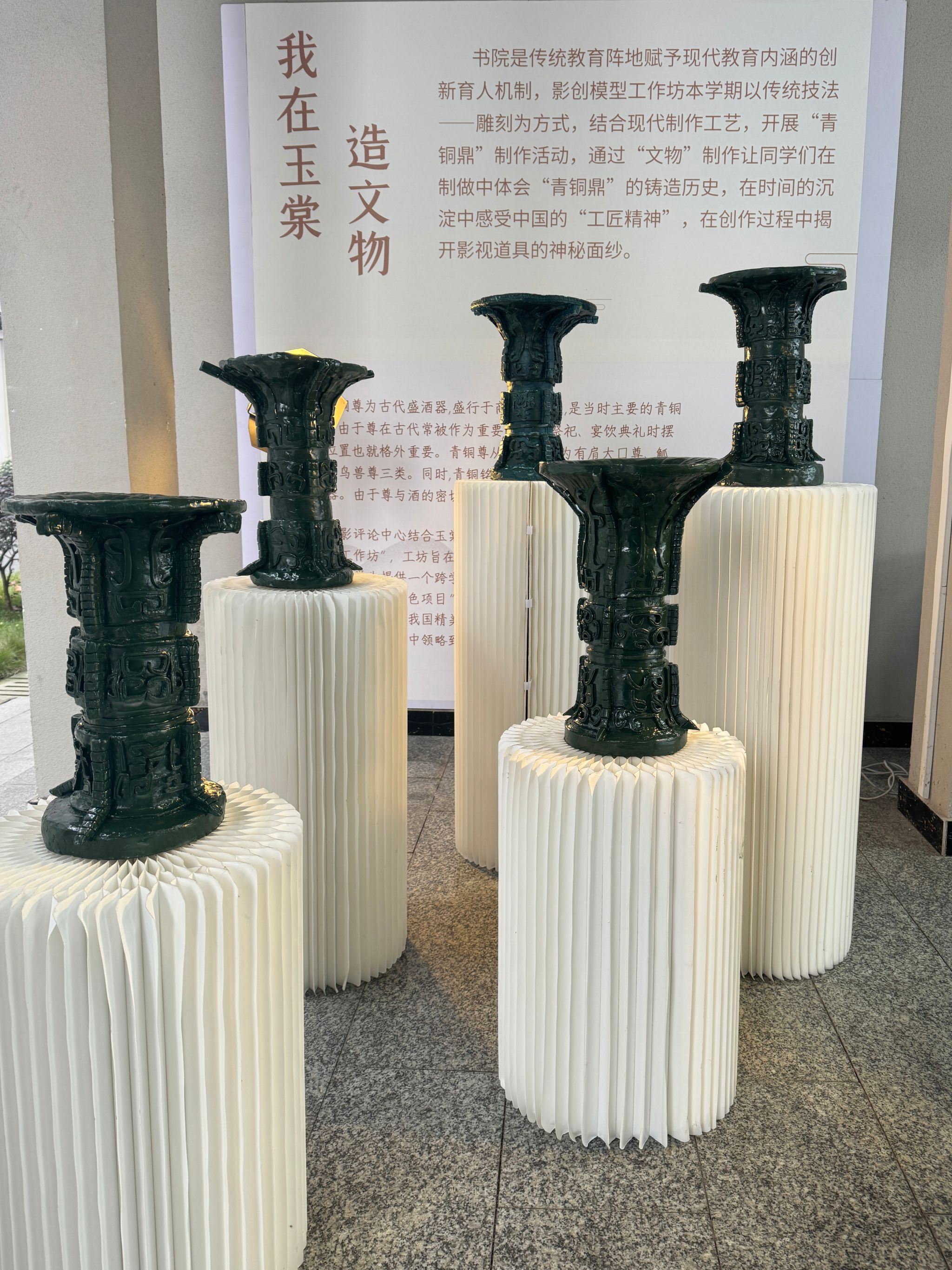 为培养移通学子的动手能力与和思维重构能力,电影评论中心与玉棠书院成立“影创模型工坊”,为学子提供最真切、最显实、最有触感的文物还原体验。工坊指导老师谭雪老师以青铜和唐俑为核心,开创“我在玉棠造文物”系列活动,从往期的青铜鼎、青铜尊和青铜面具,到本学期的新加入的唐朝女俑,将商周的青铜面具与唐代的女俑两种不同的文化进行交融碰撞,使工坊学子在复刻商周神秘面纱的同时,置身唐代的风华涌动,感受着千年绵延的工匠精神蕴含。